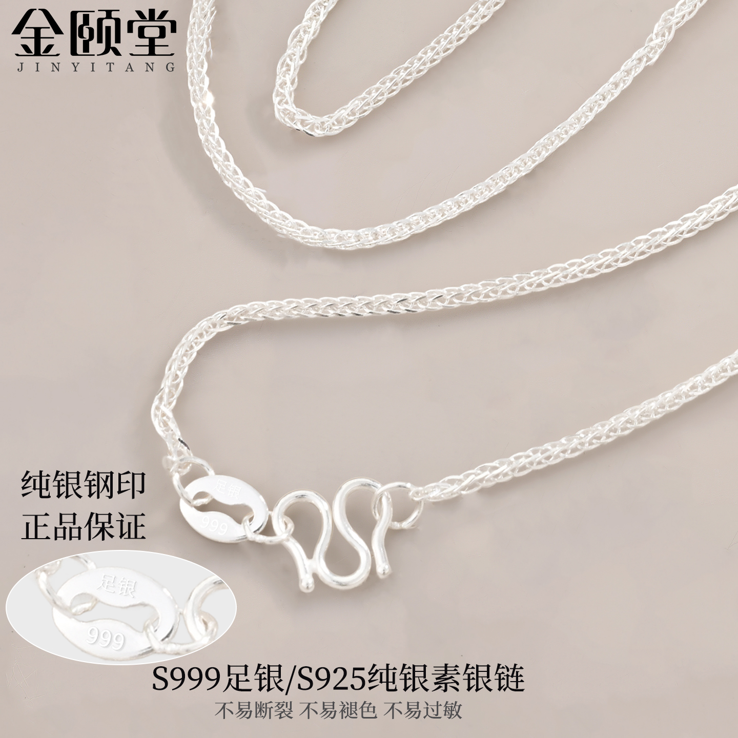 纯银项链999足银肖邦链女无吊坠素银链子s925男士蛇骨链轻奢银饰 - 金颐堂旗舰店