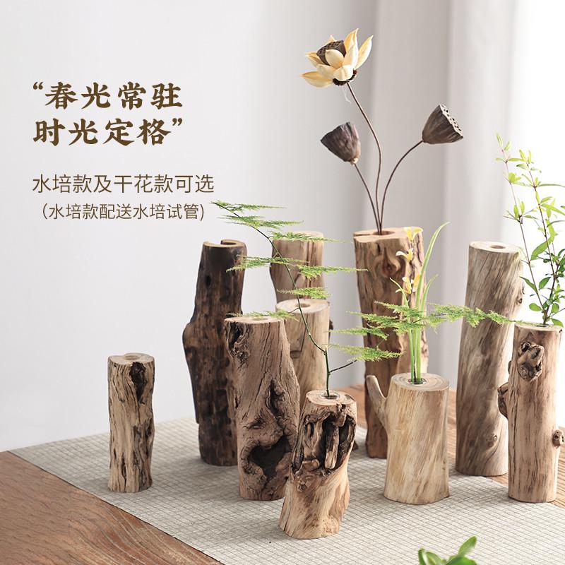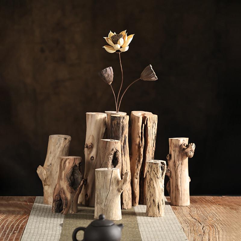 中式复古禅意客厅实木干花花瓶摆件茶室茶桌插花木头装饰品摆设 - 佰华家具
