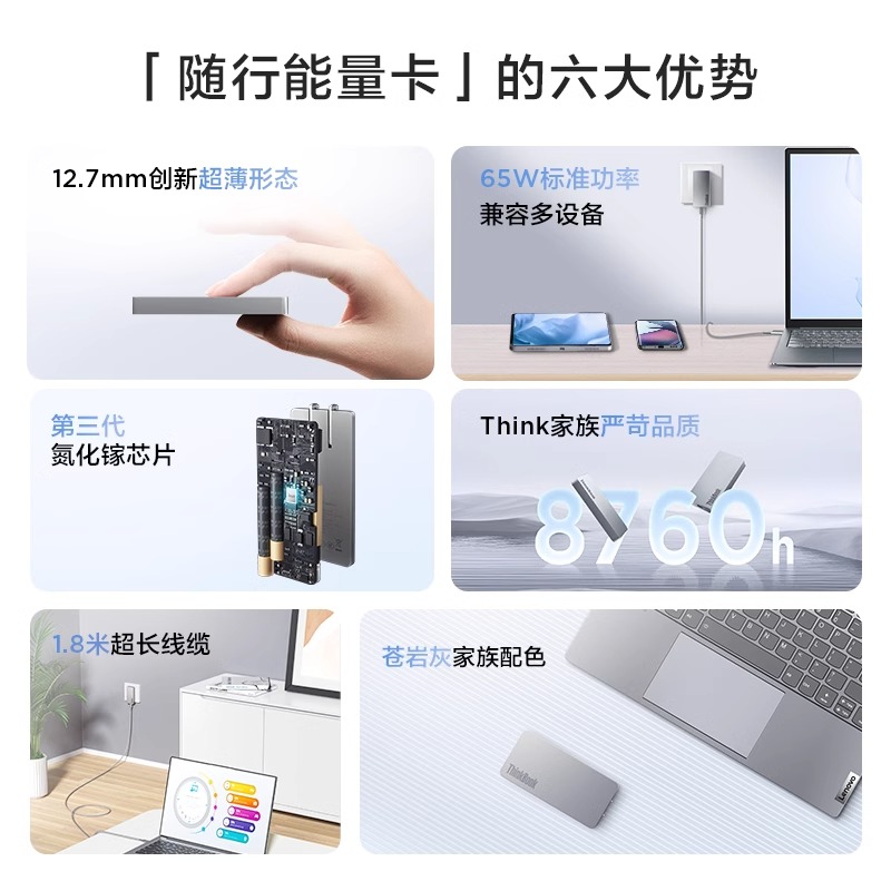 ThinkBook氮化镓充电器正品充电器65W超薄饼干样式手机笔记本便携旅行