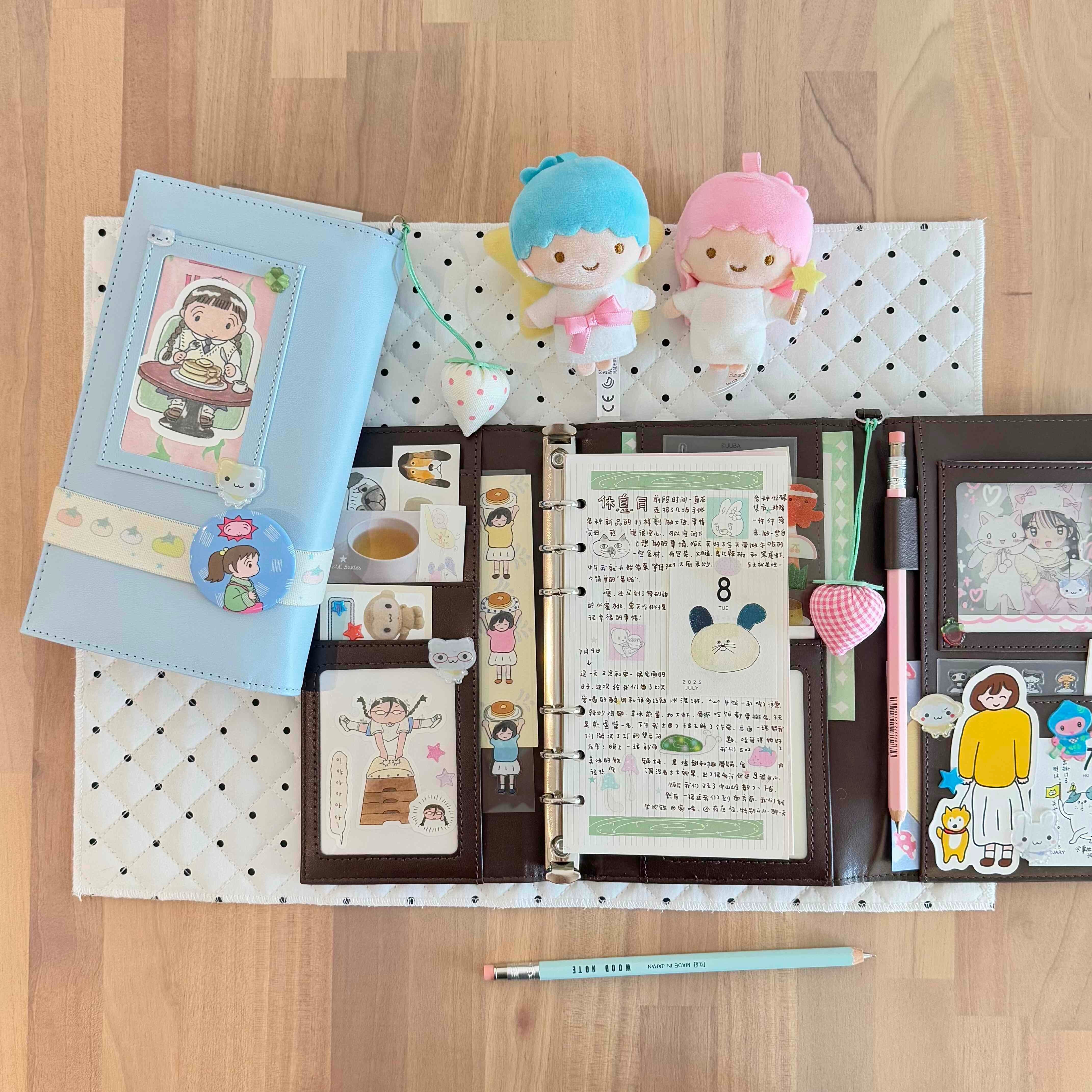 复古深棕三折开窗A6活页手账本PU皮质高颜值笔记本日程记事本 - 呆萌女孩