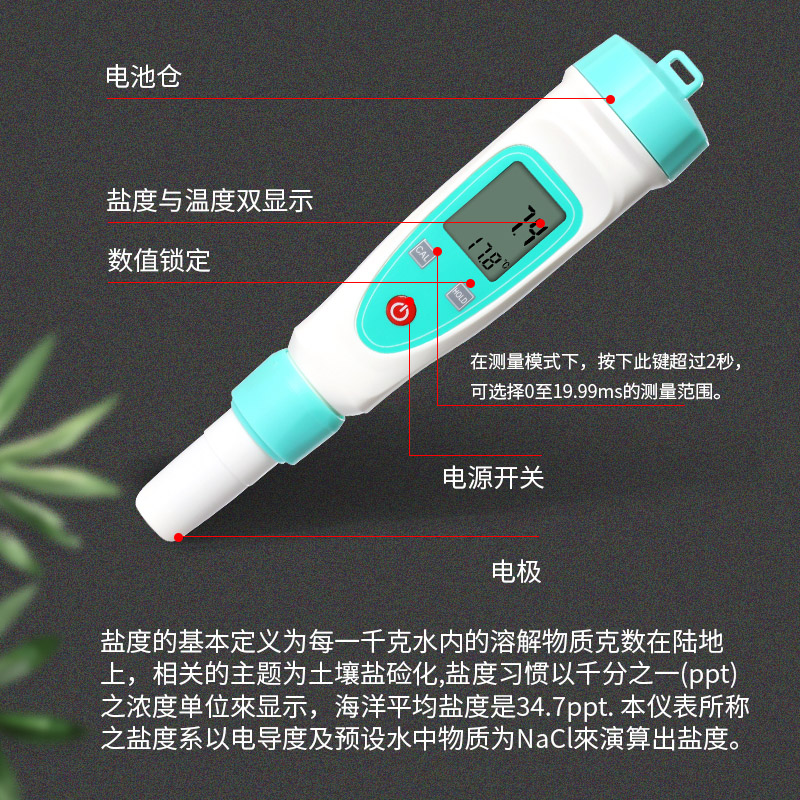 电子盐度计测盐器测量仪水族鱼塘盐水咸度计数显表海水养殖比重计 - 天河甜品馆