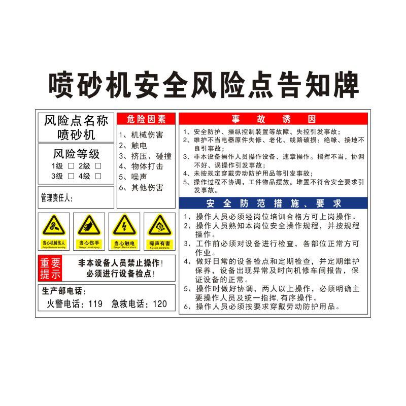 喷砂机安全风险点告知牌卡危险源预防措施机械设备操作标识牌标志标示指示警告标语提示贴纸警示牌定制FXD47 - 金太郎旗舰店