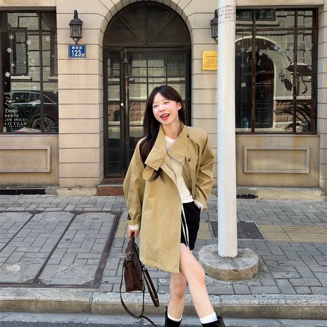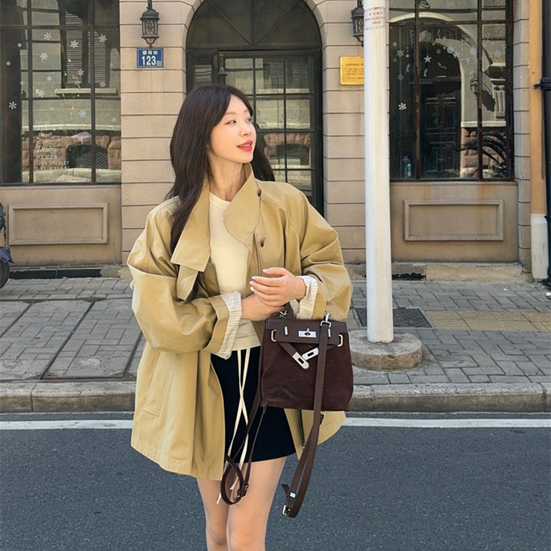 实拍实价~法式复古立领宽松短款风衣外套 - 轩轩优选服饰