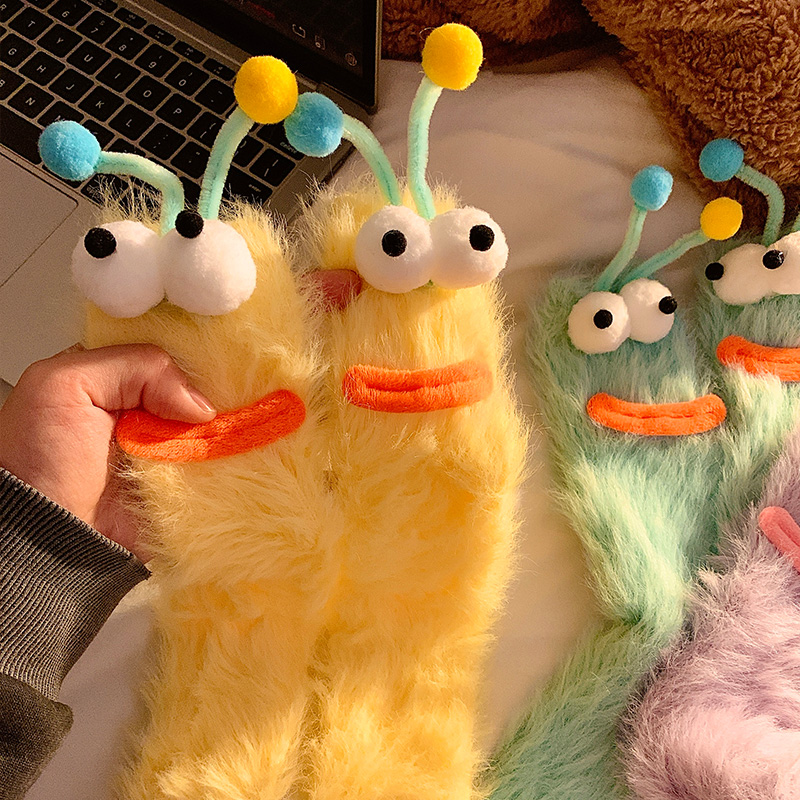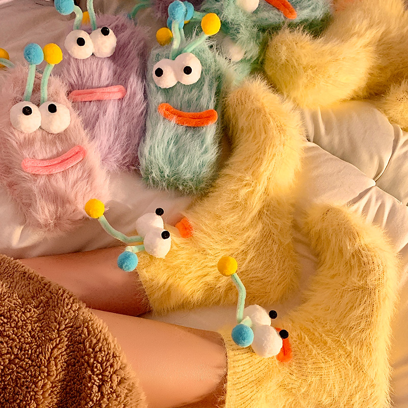 可爱毛绒袜子女秋冬搞怪情侣加厚中筒袜居家地板袜珊瑚绒睡眠袜 - Blue Vip Hyovo 少女心杂货店