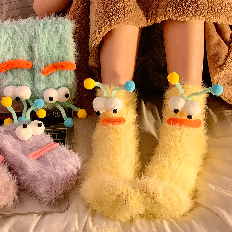 可爱毛绒袜子女秋冬搞怪情侣加厚中筒袜居家地板袜珊瑚绒睡眠袜