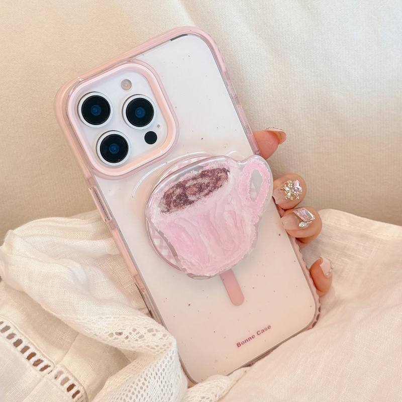 粉色咖啡杯磁吸支架适用苹果16promax手机壳iPhone17防摔15新款14pm透明13高颜值简约12好看11高级小众少女心 - 猴猴数码 独家定制