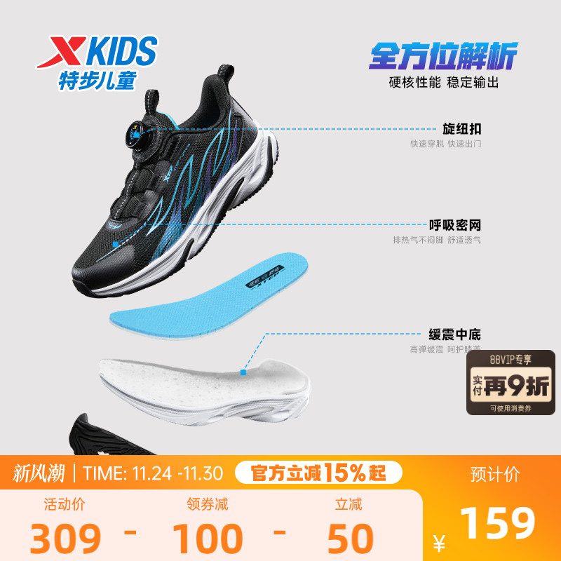 特步童鞋秋季新款儿童运动跑鞋男童中大童轻弹缓震耐磨旋钮扣跑鞋 - 特步童装旗舰店