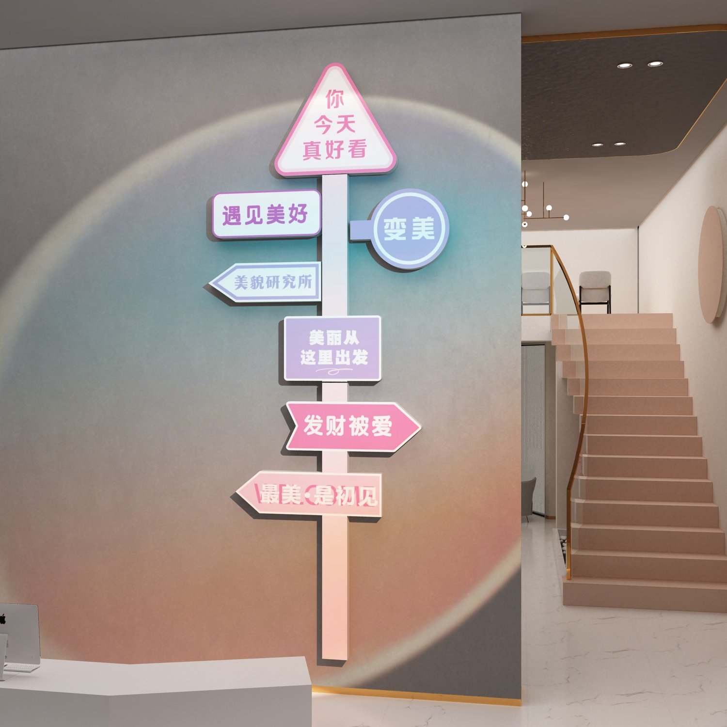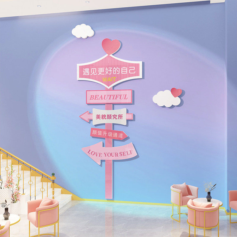 网红打卡背景美容院氛围布置拍照区服装店墙面软装饰品形象贴摆件 - 80饰家