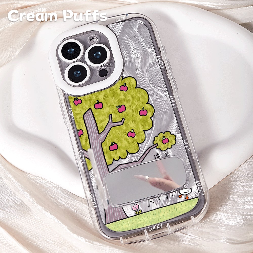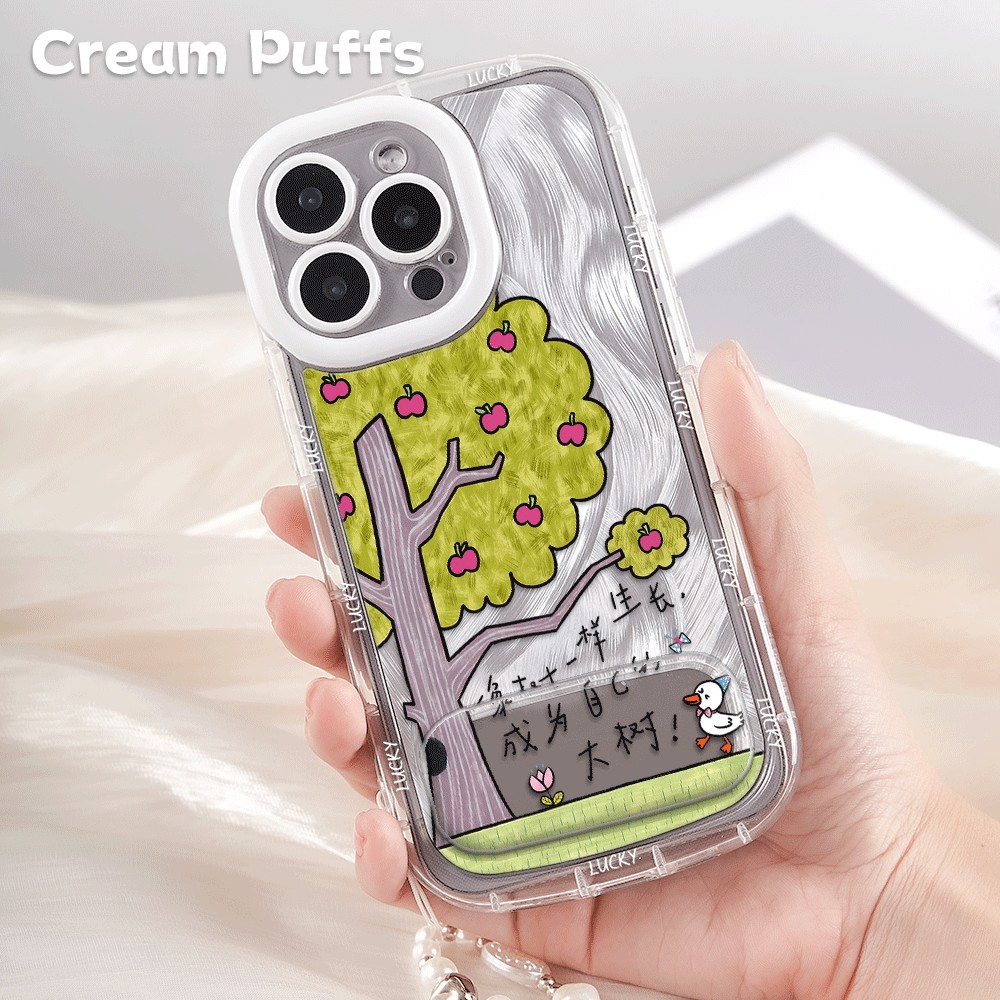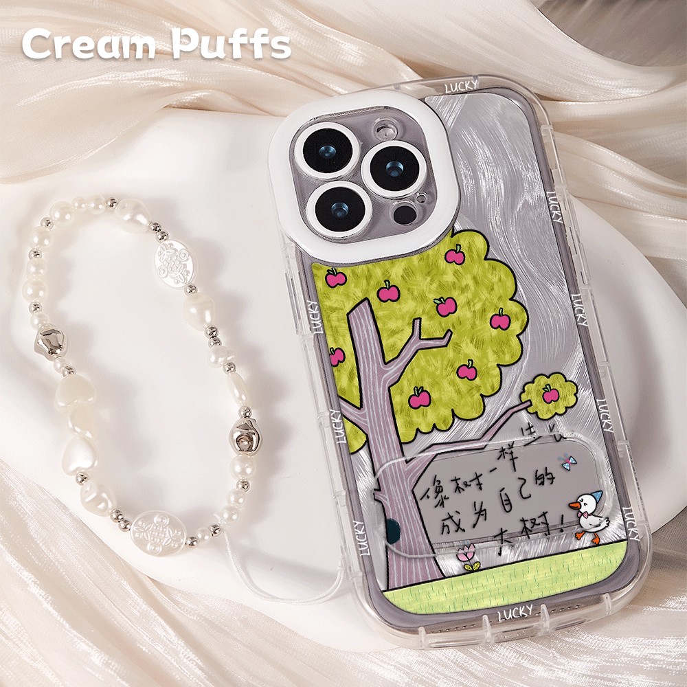 苹果16带挂绳13适用OPPOReno15像树一样生长IQOONEO11镜子支架ins风iPhone12手机壳软17ProMax羽纱泡芙14plus - 冬窝子手机壳