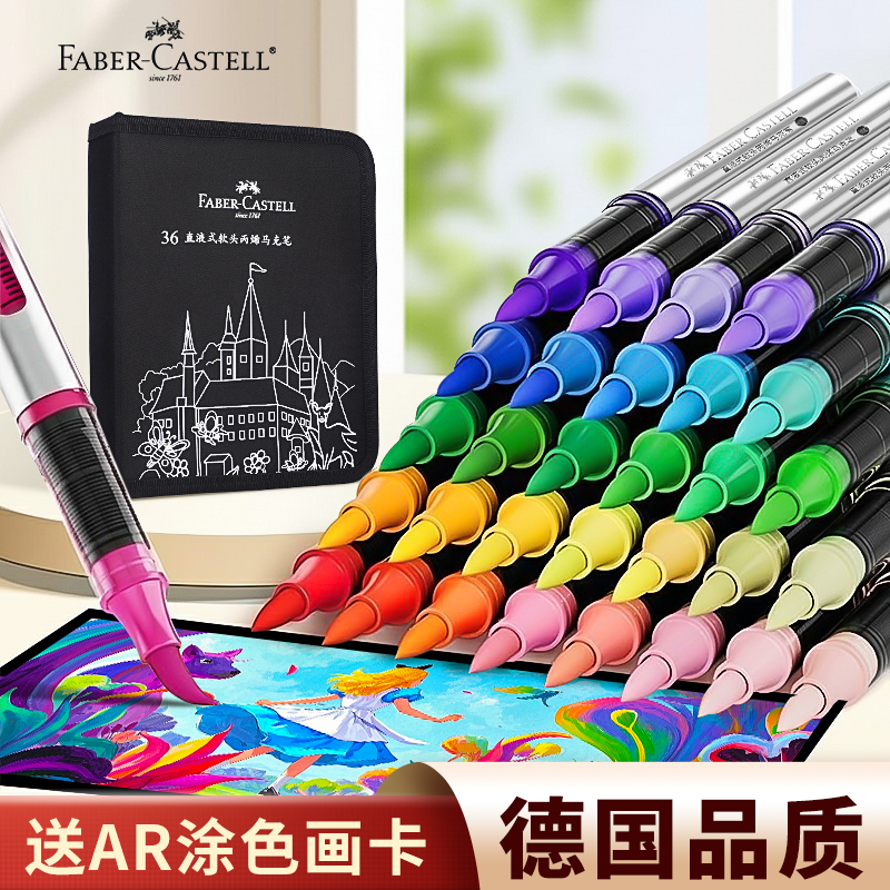 辉柏嘉直液式丙烯马克笔软头80色儿童可水洗60色小学生美术专用水彩笔不透色可叠色幼儿园画笔48色绘画彩色笔 - 辉柏嘉易优专卖店