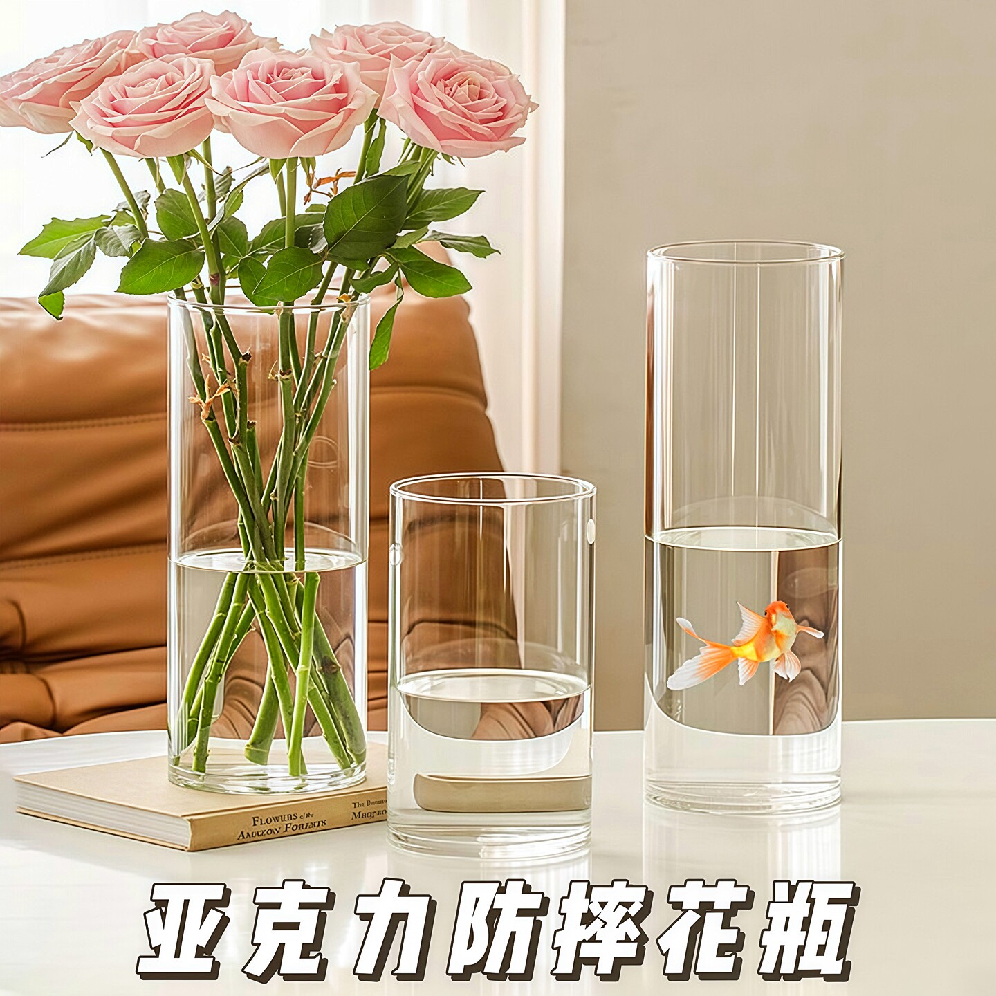 亚克力防摔花瓶摆件客厅插花透明富贵竹水培器皿轻奢高级感醒花桶