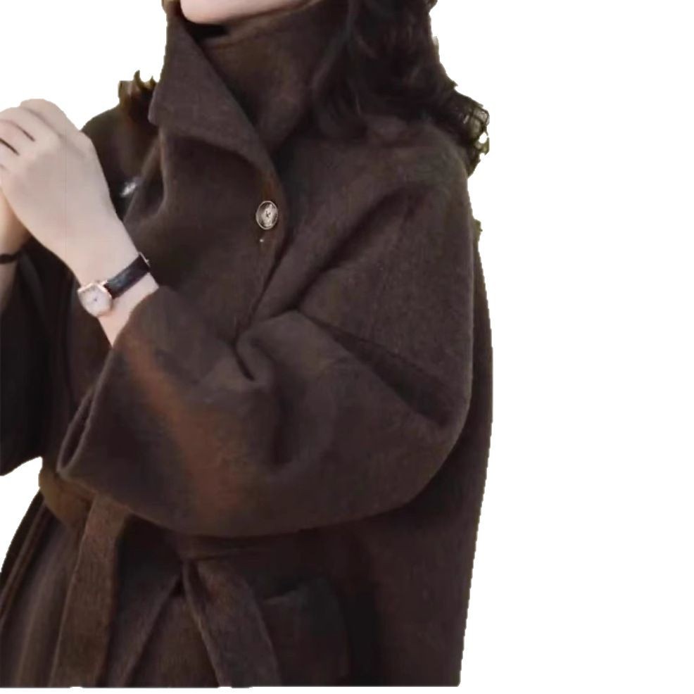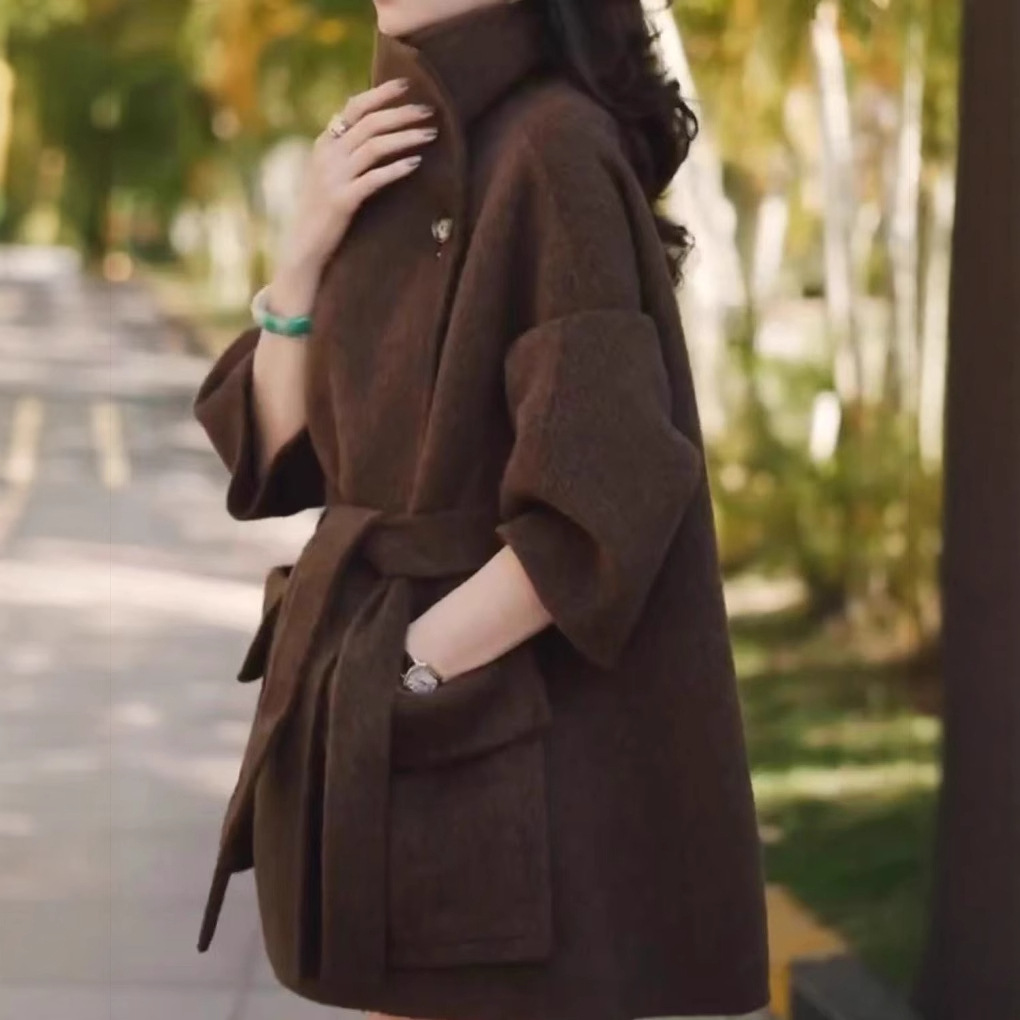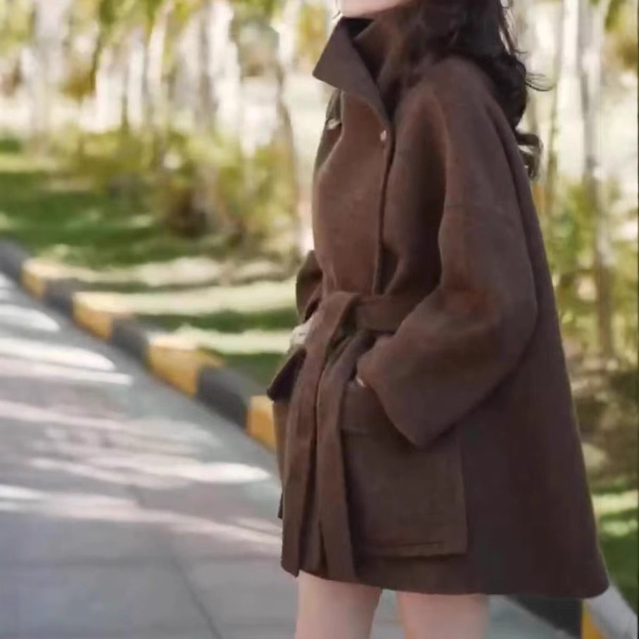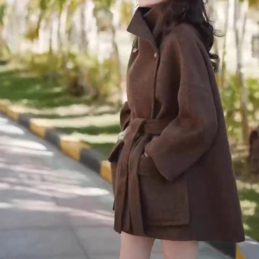 日系cherrykoko23265婕妤秀中长款呢子外套秋冬款系带收腰大衣