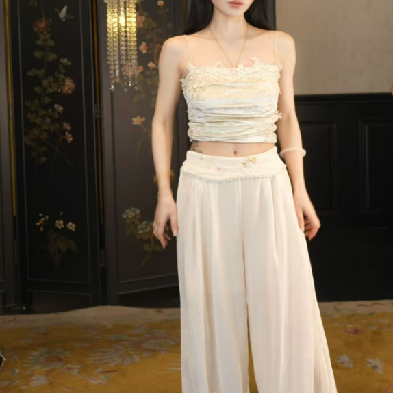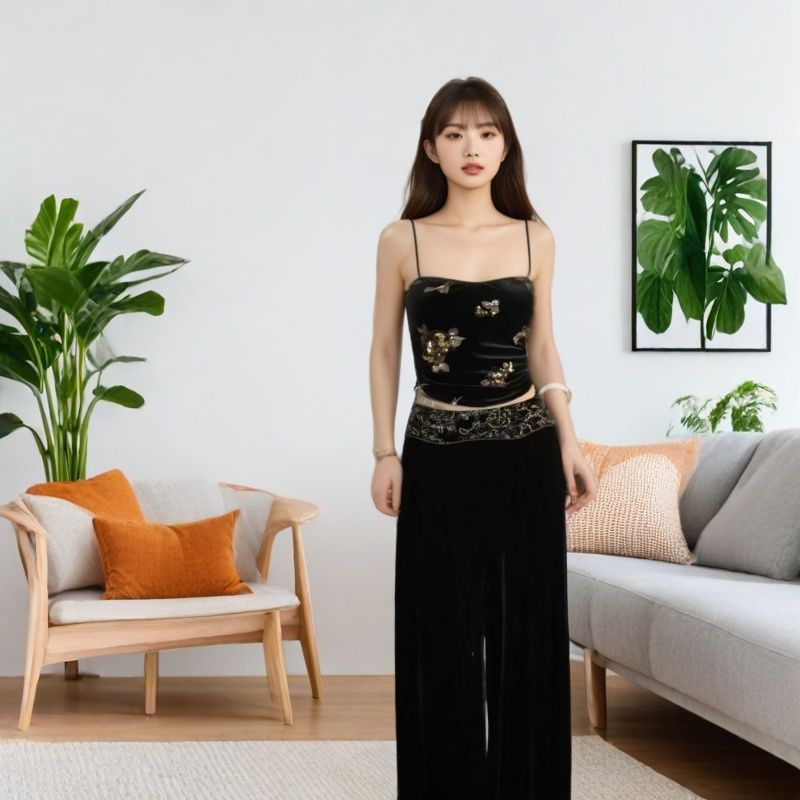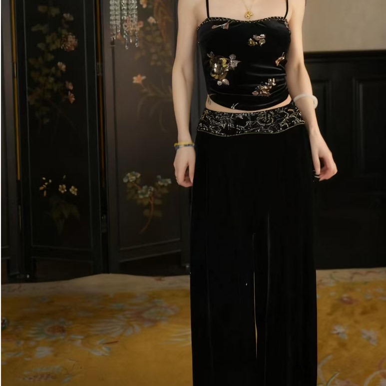 MOSS9.29 20:00上新【素盏生花】新中式珠绣丝绒阔腿裤 - 地球店品牌折扣店