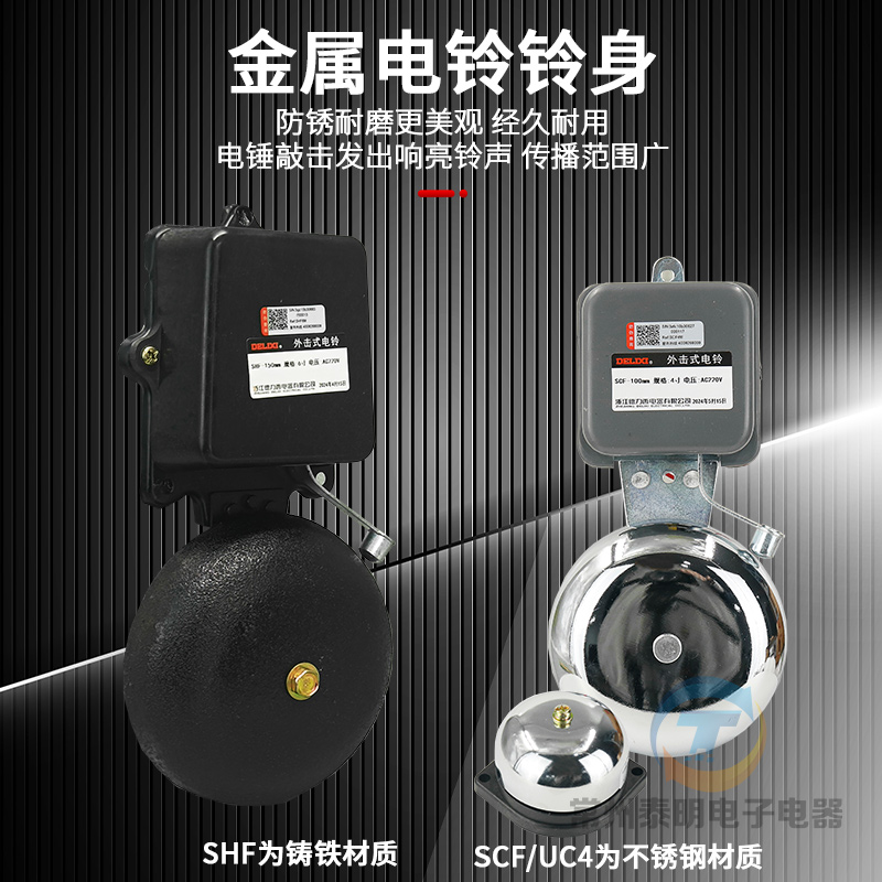 德力西2/3/4/6寸8内击电铃工厂车间学校单位用打铃器上班下课220V - 常州泰明电子电器