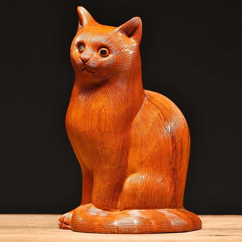 木雕摆件小猫咪实木头雕刻动物家居客厅桌面办公司装饰女生小礼品 - 不谙世事焕科
