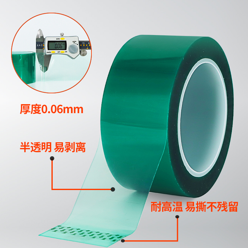 PET绿色耐高温胶带PCB电镀烤漆门窗铝材喷涂夹胶玻璃耐高温胶布耐酸碱喷塑防烤保护膜无痕遮蔽硅胶带100米