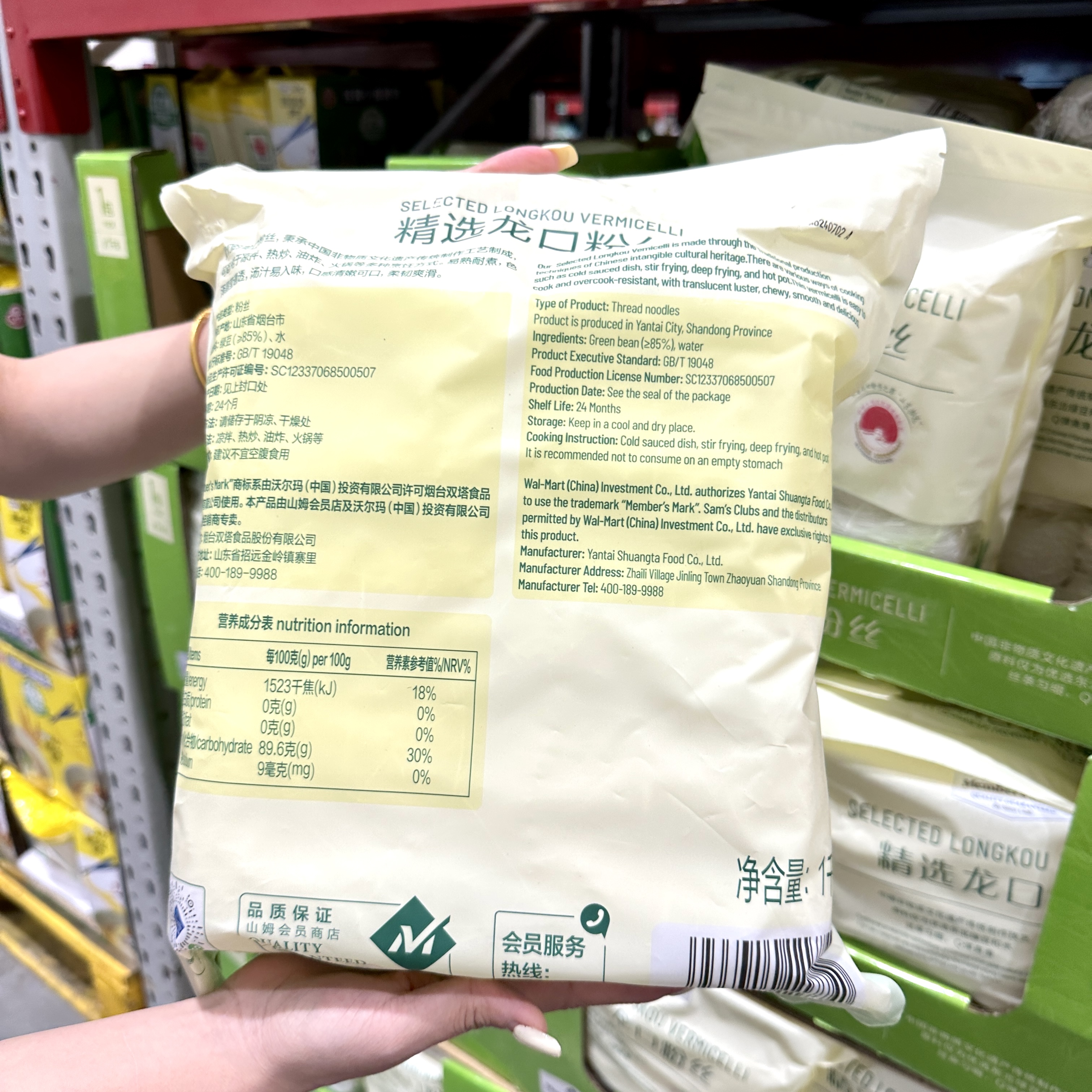 山姆代购MM精选龙口粉丝1000g正宗火锅麻辣烫速食凉拌细粉丝米粉 - 张大大上海costco代购