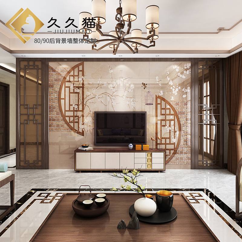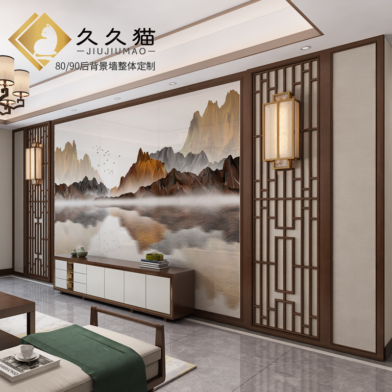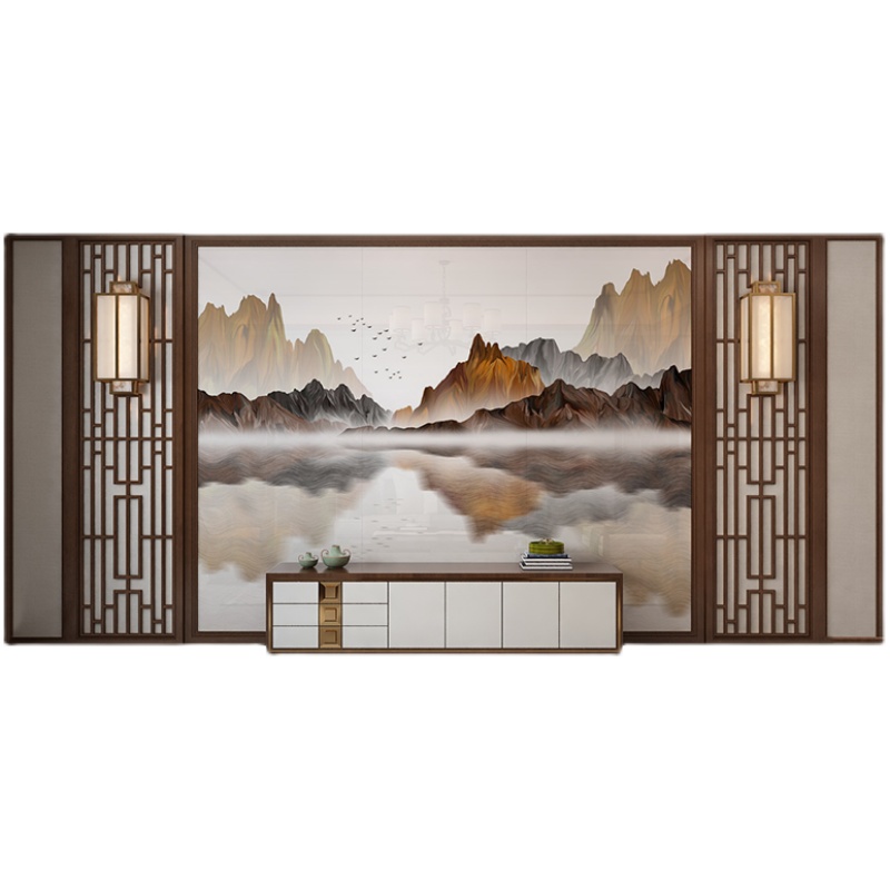 您的位置:他他商城  >   >  新中式电视背景h墙实木花格护板线条边框造型瓷砖影视墙水墨山水