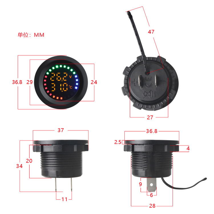 新款车用仪表盘12V-24V彩屏温度电压 游艇摩托车