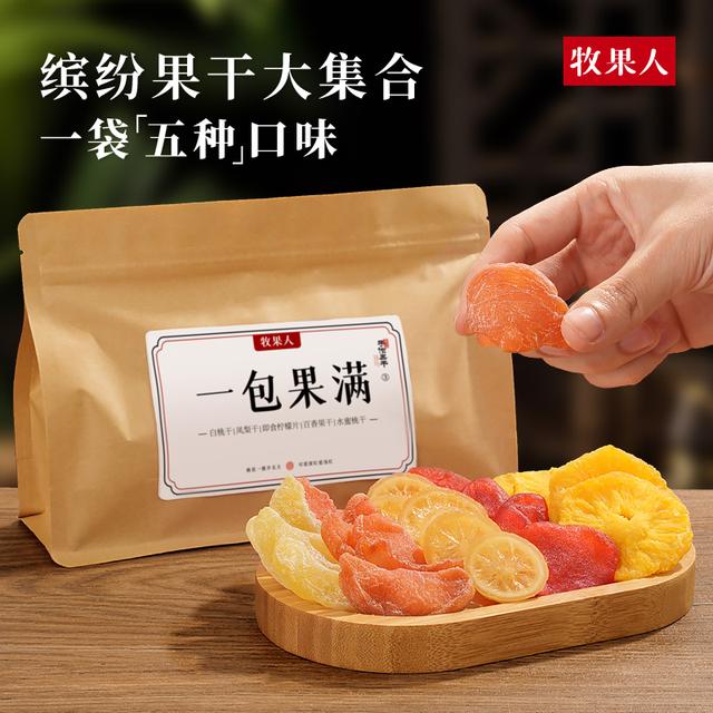 牧果人一包果满混合果干散装白桃干猕猴桃干百香果干蜂蜜柚子干A - 蓝宝食品店