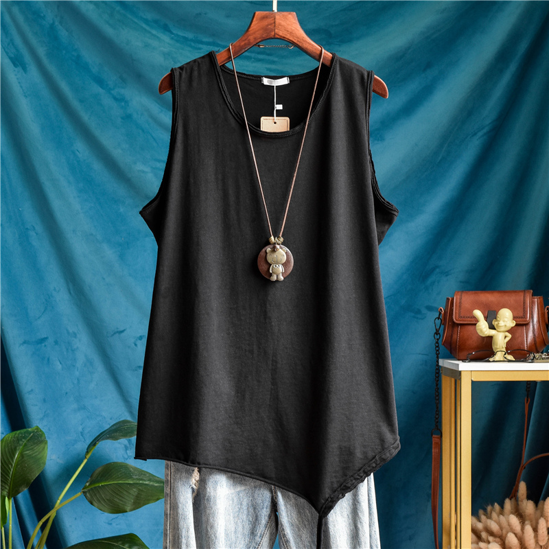 纯棉中长款不规则吊带背心女外穿无袖宽松大码叠穿内搭春秋打底衫 - 艺艺家高质量文艺女装