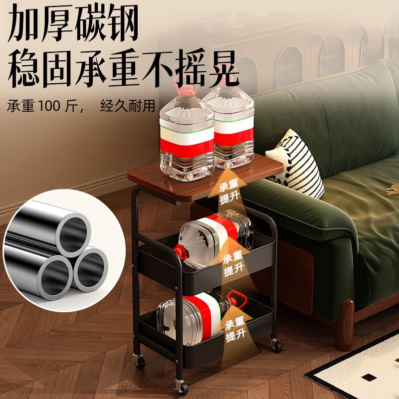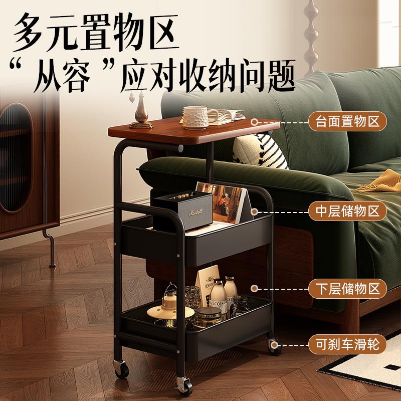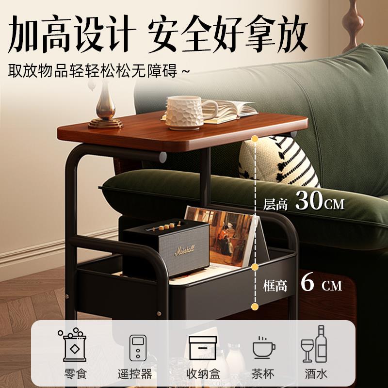 可移动边几中古风小推车带桌板茶几滑轮收纳置物架客厅沙发侧边柜