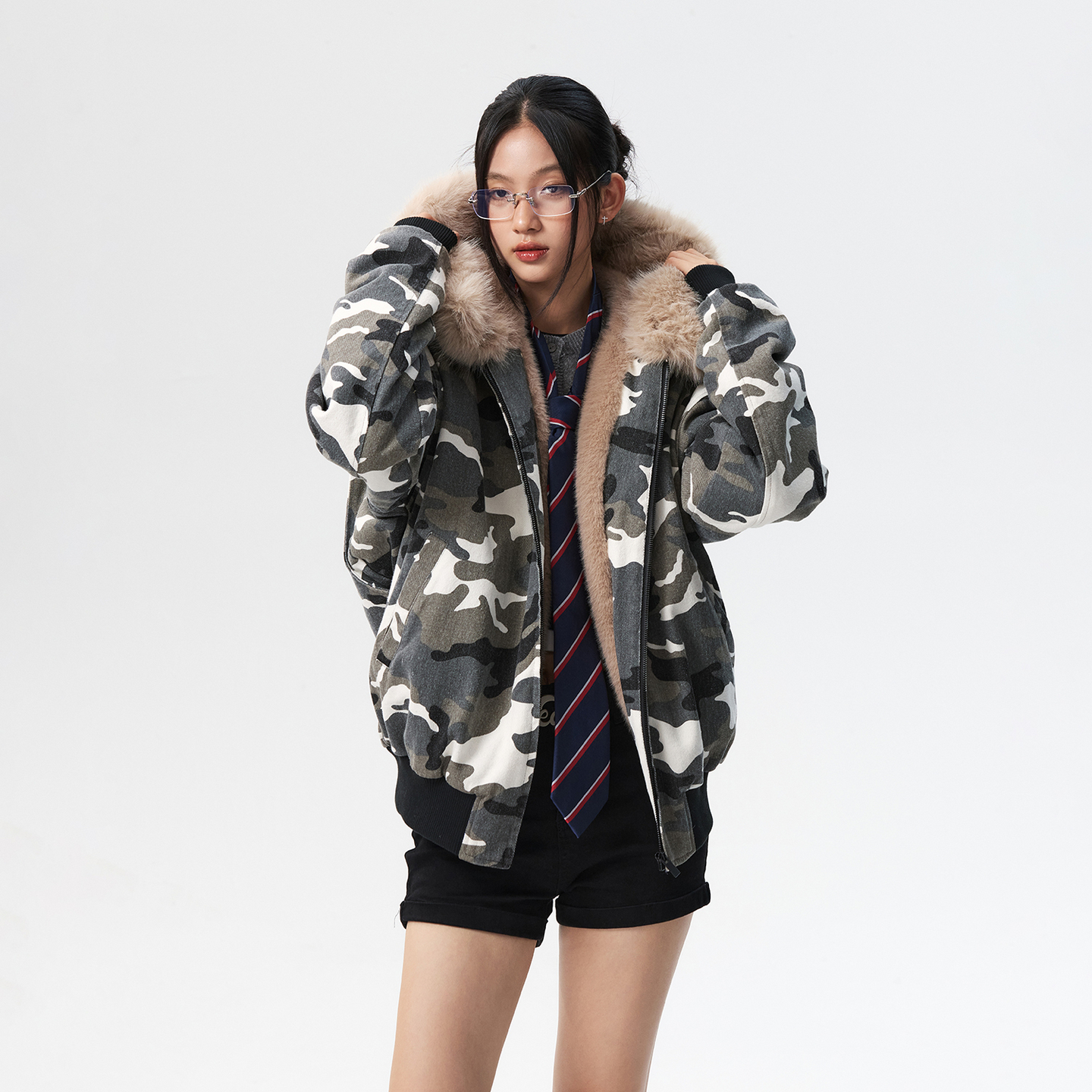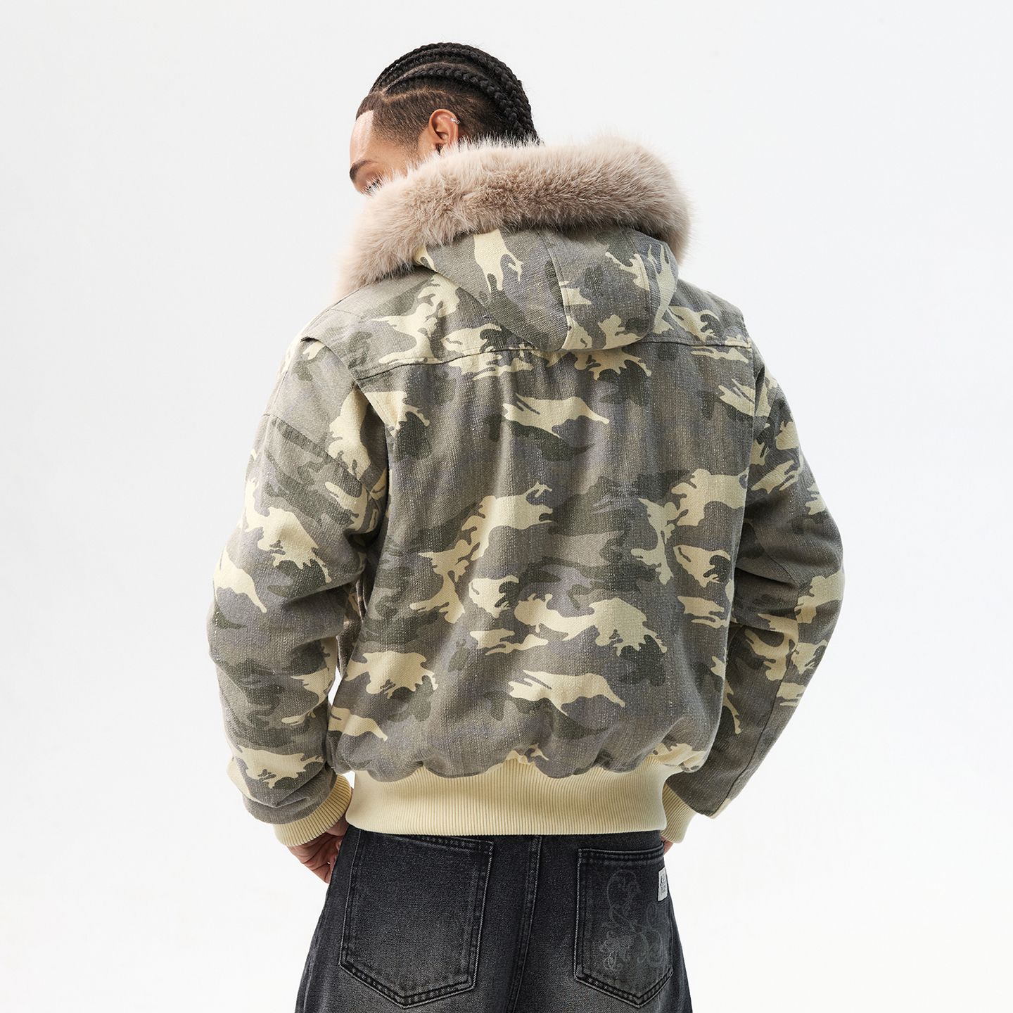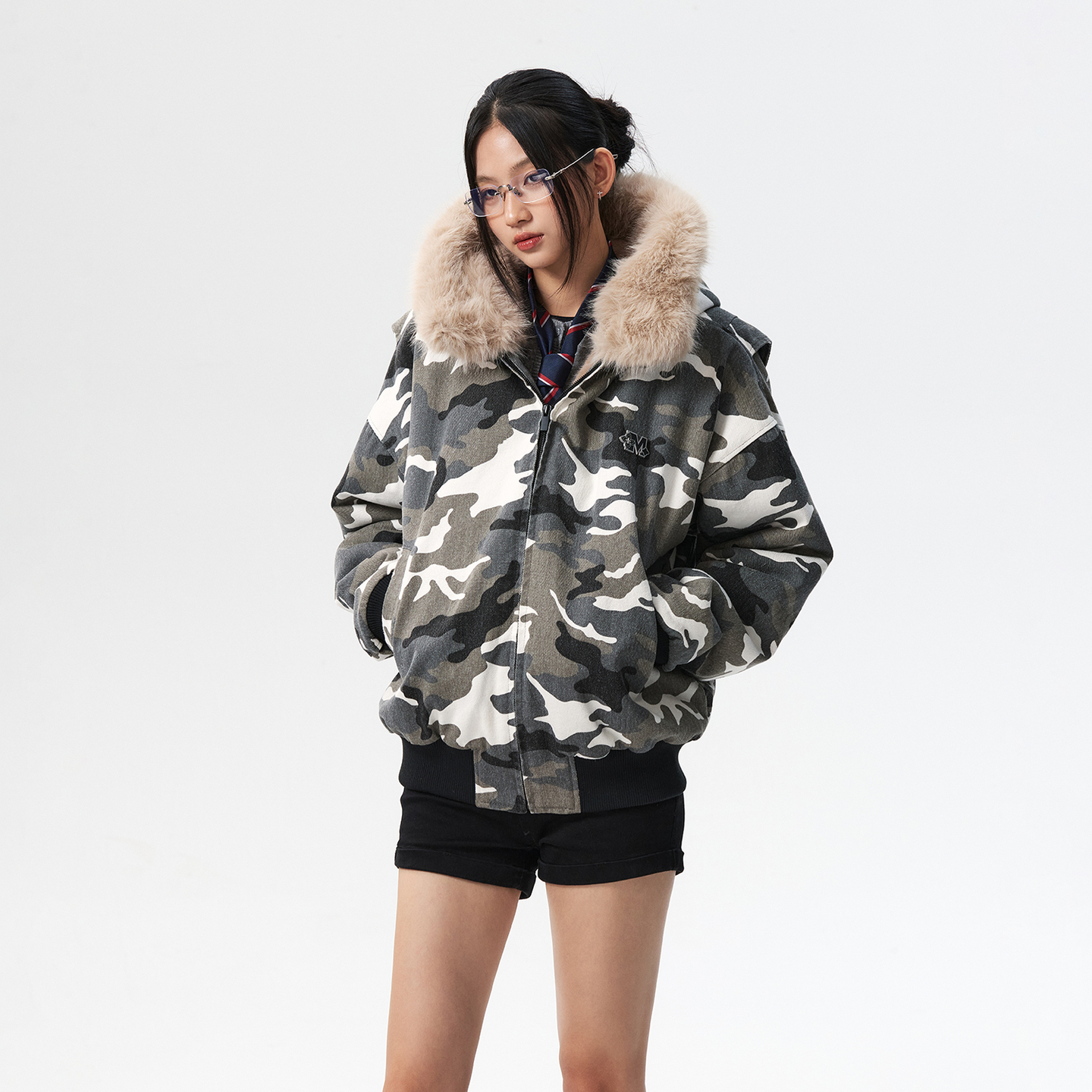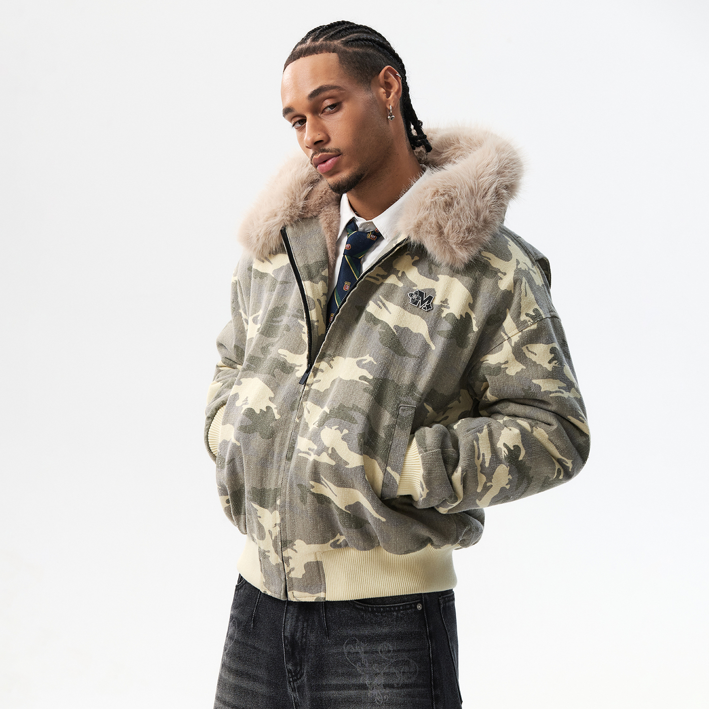 MEDM 迷彩毛领毛绒保暖休闲棉衣冬季美式复古拉链棉服情侣外套男 - MEDM