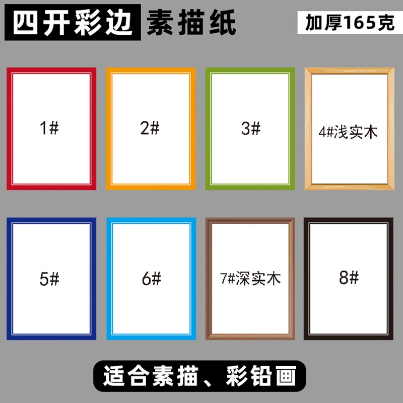 彩边加厚素描纸165克四开八开素描彩铅绘画仿实木装裱画框纸 - 腾奔万马商城