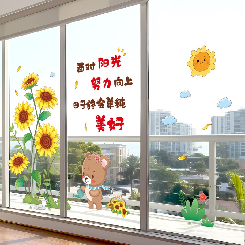 速发客厅台玻璃门装绿对角花卉贴纸饰植小清新卧贴门室推拉门窗贴 - 云君小店