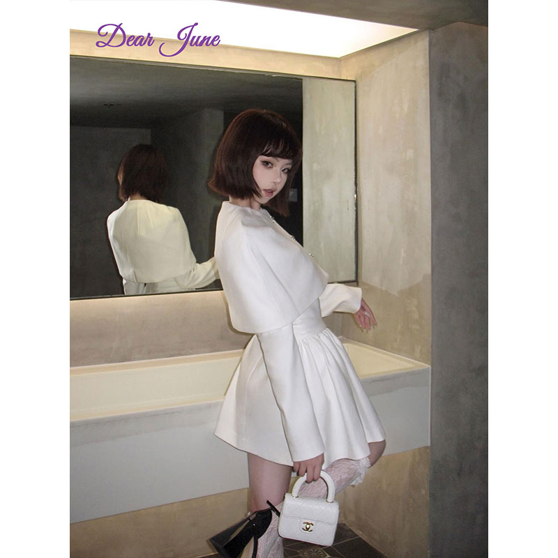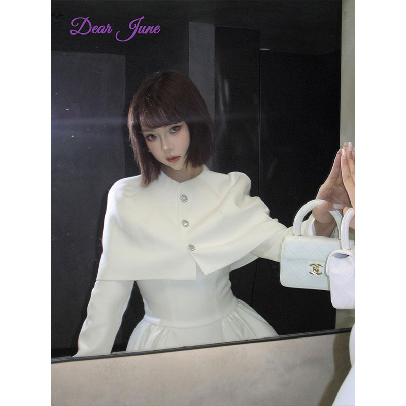 您的位置:他他商城  >   >  DearJune 韩国博主同款毛呢收腰连衣裙可拆卸斗篷套装气质千金感