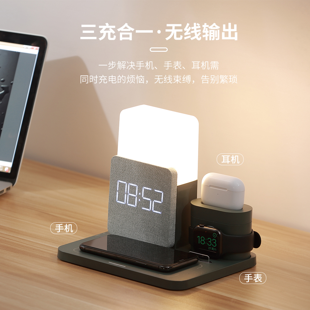 您的位置:他他商城  >   >  三合一小夜灯闹钟多功能无线充电器适用iPhone16/15/14ProMax苹果手机13手表12耳机iWatch/AirpodsUSB充电座
