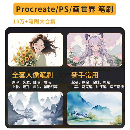 procreate零基础教.程iPad绘q画人像厚涂漫画油画水彩素材字体笔 - 狄恒服饰商贸店