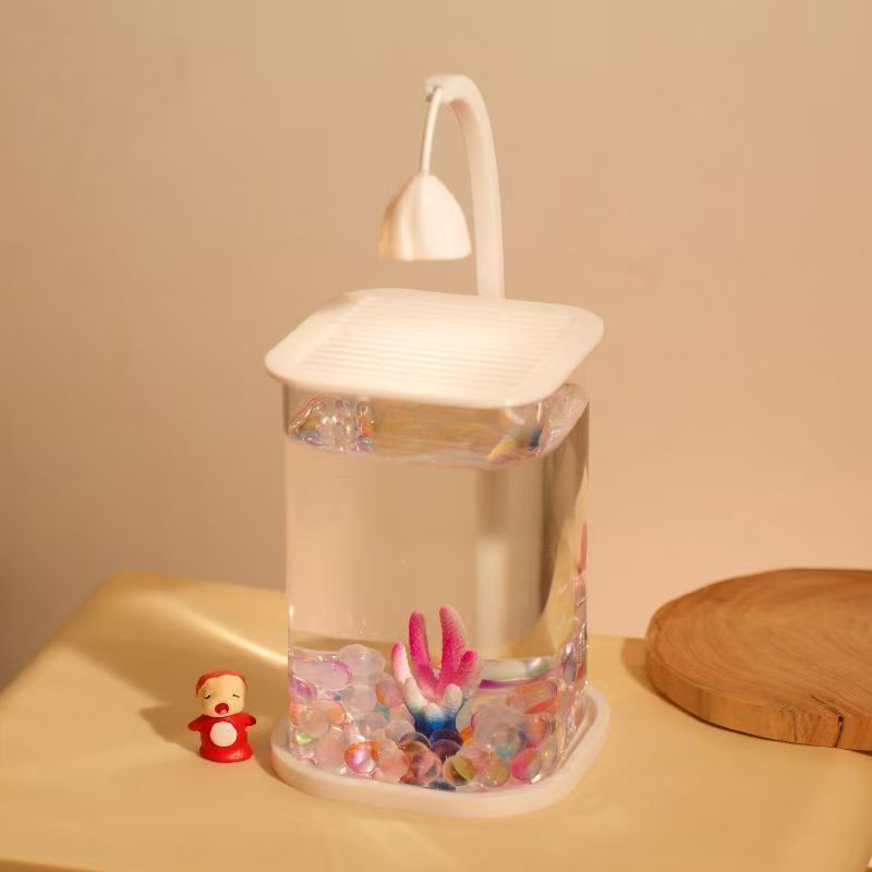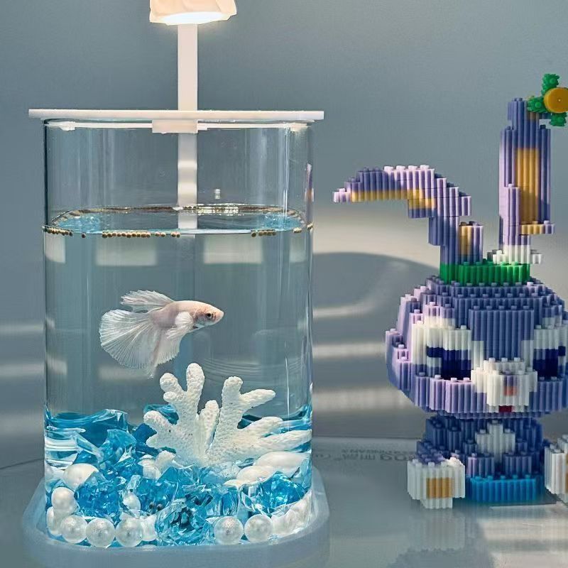 桌面迷你小鱼缸自循环玻璃鱼缸袖珍斗鱼缸小型家用小夜灯花草盆栽 - 小众优品生活馆