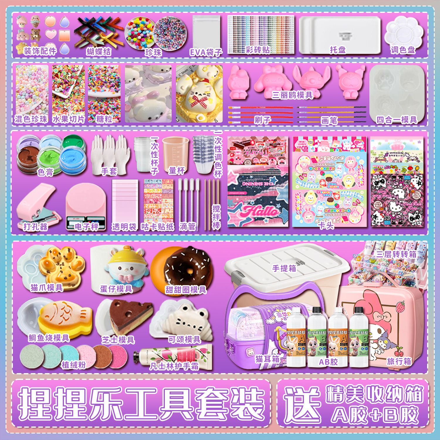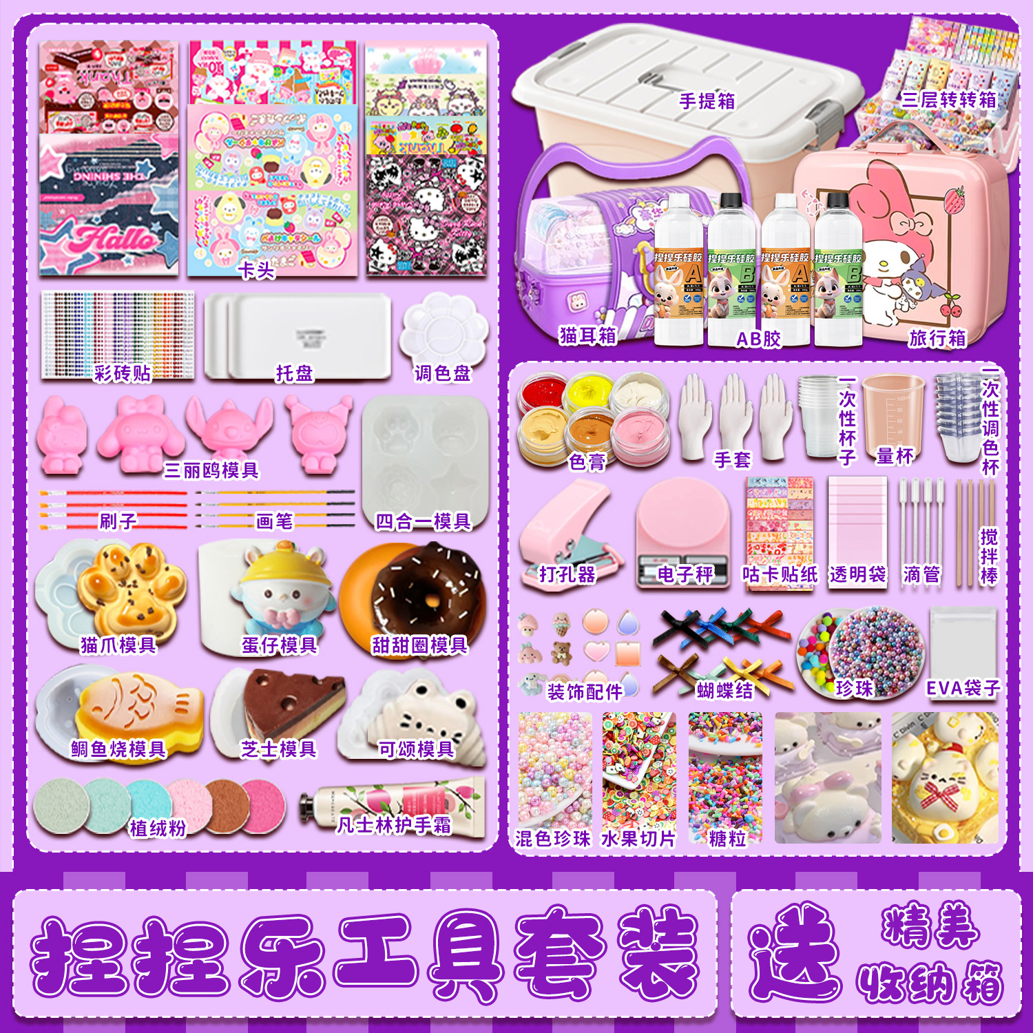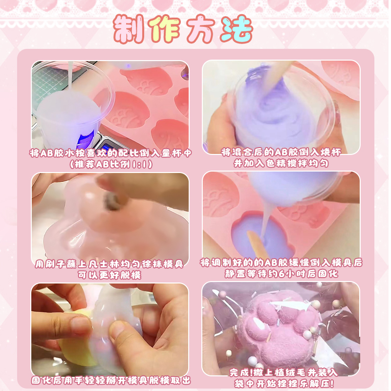 捏捏diy猫爪自制咕卡解压玩具迷你套装乐硅胶儿童模具材料包烂泥