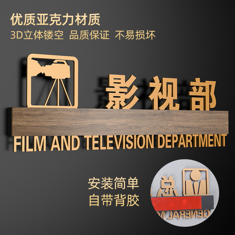 摄影工作室影棚影视剪辑部门科室牌办公室门牌定制公司广告设计部直播间门口亚克力标识牌镂空字创意标牌定制 - 栀博办公旗舰店