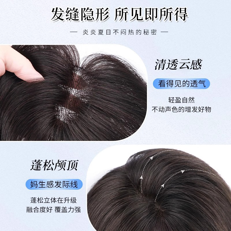 刘海假发女片真发头顶补发蓬松高颅顶遮白发增发量自然轻薄补发片