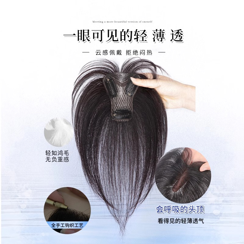 刘海假发女片真发头顶补发蓬松高颅顶遮白发增发量自然轻薄补发片 - 天空树旗舰店