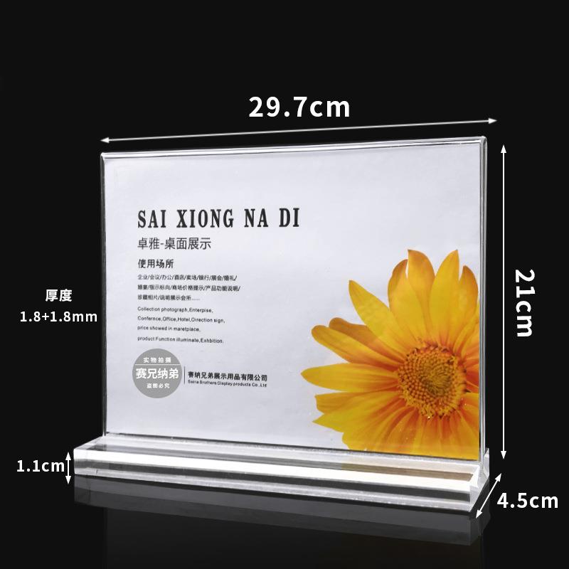 A4亚克力台签7012T型亚克力桌牌21*29.7横式展示牌酒水台卡席位牌 - 禾柳商贸城
