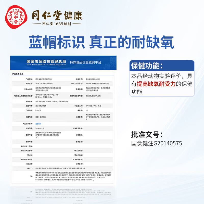 北京同仁堂红景天刺五加片抗高原反应胶囊提高缺氧耐受力口服液 - 天猫超市