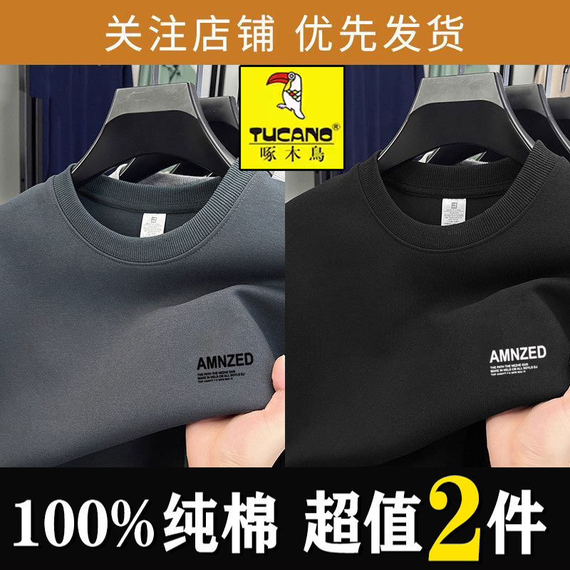 啄木鸟秋冬季男士卫衣圆领印花加绒长袖外穿休闲潮流男上衣打底衫 - 啄木鸟休闲服饰专柜店