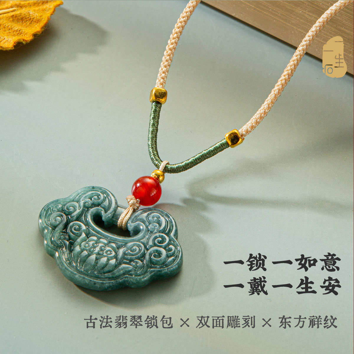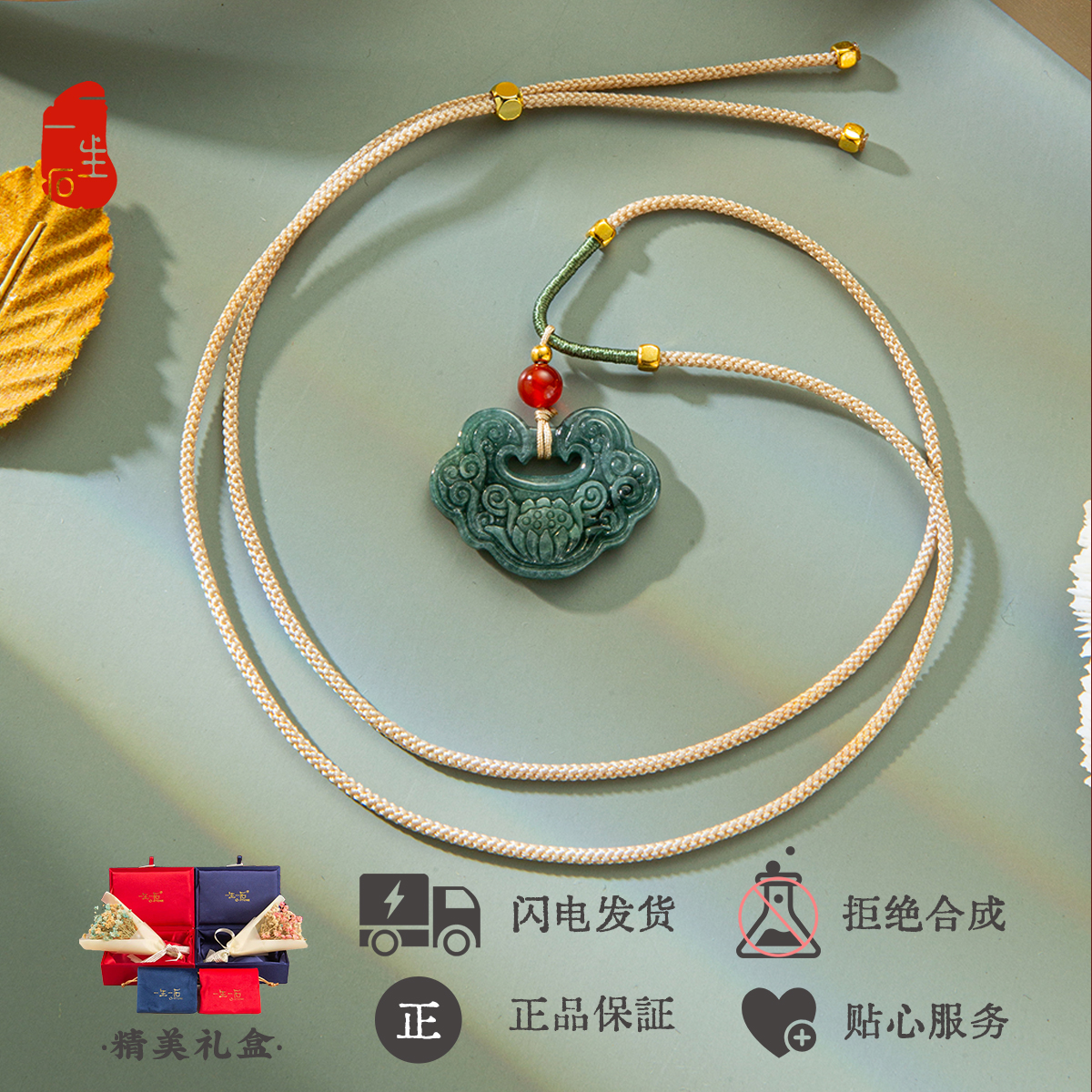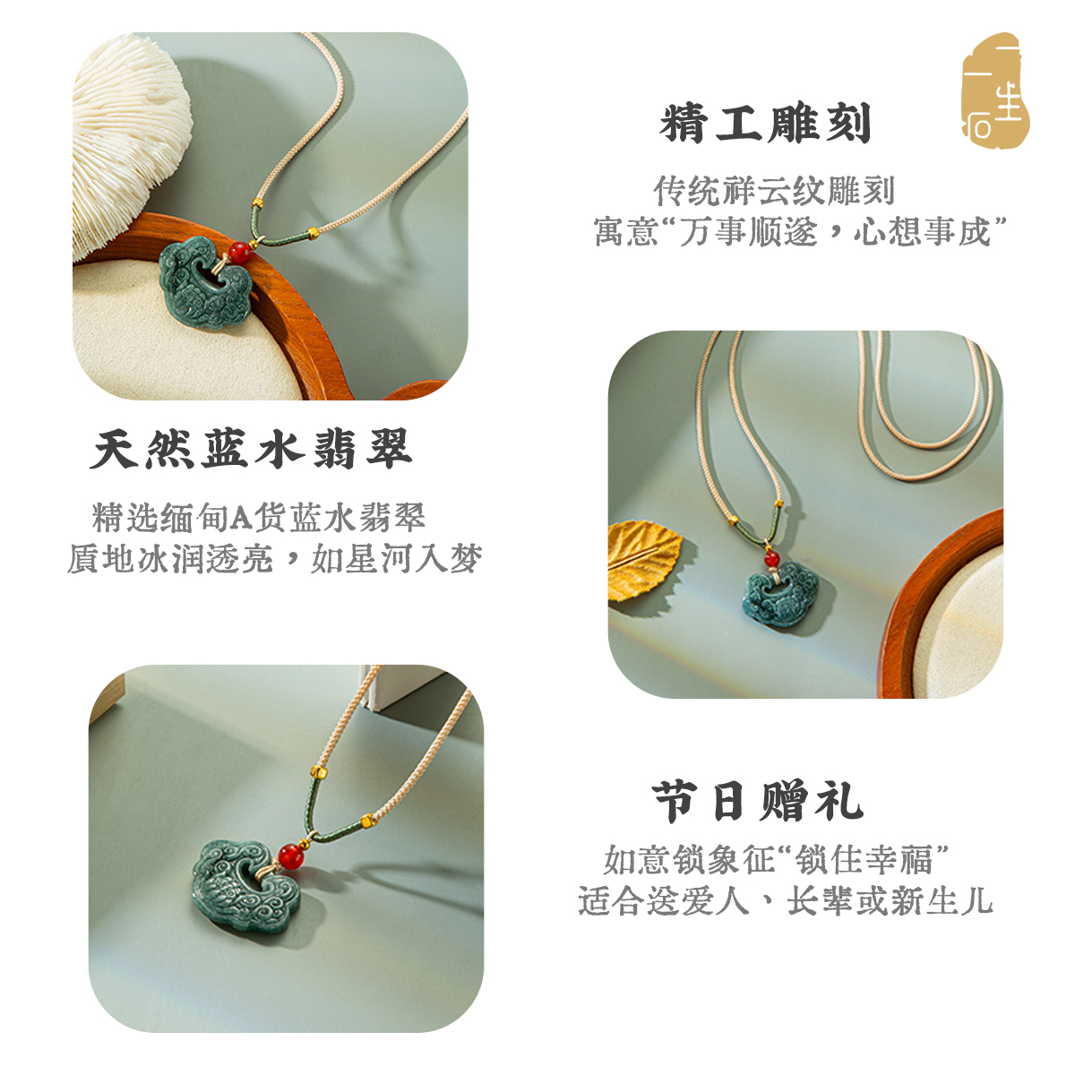 一生一石天然蓝水翡翠如意锁吊坠女款玉石挂件项链送女友礼物 - 一生一石珠宝旗舰店
