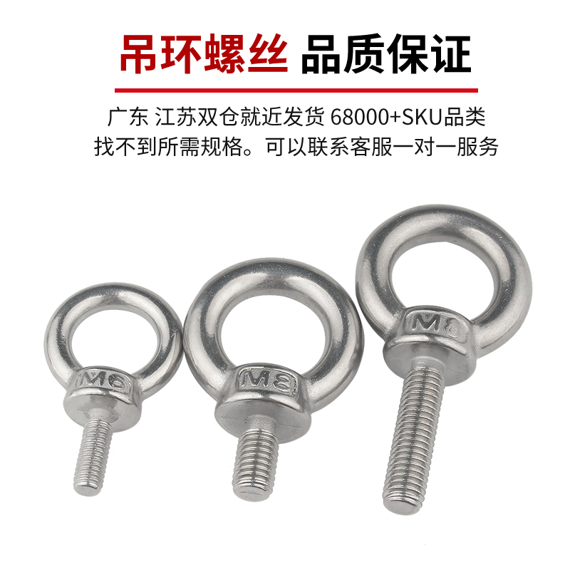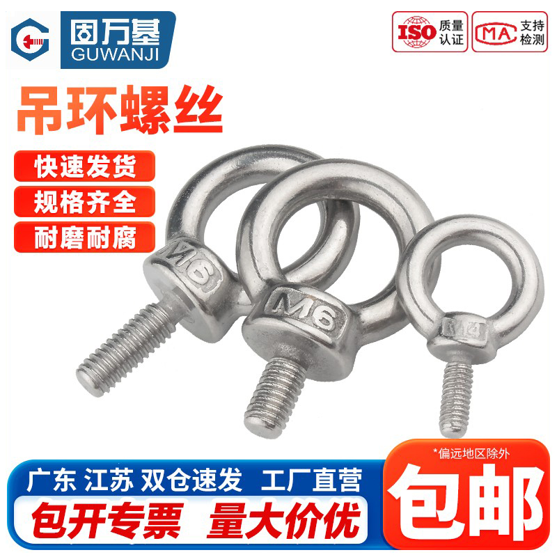 304不锈钢吊环螺丝钉 环形带圈起重吊环螺丝螺母螺栓圆环加长螺钉 - 固万基五金紧固件批发