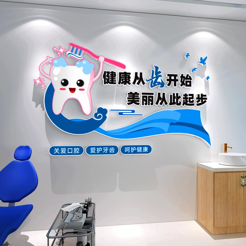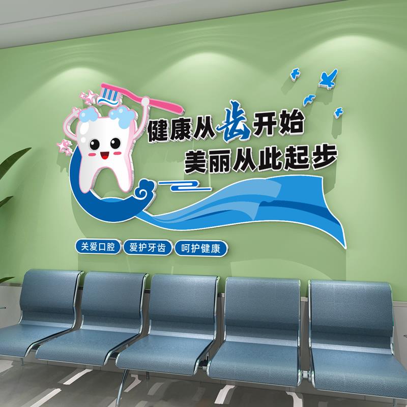 牙科医院前台装饰卡通动漫创意墙贴口腔诊所背景墙护士站文化墙 - 水法百货官营店