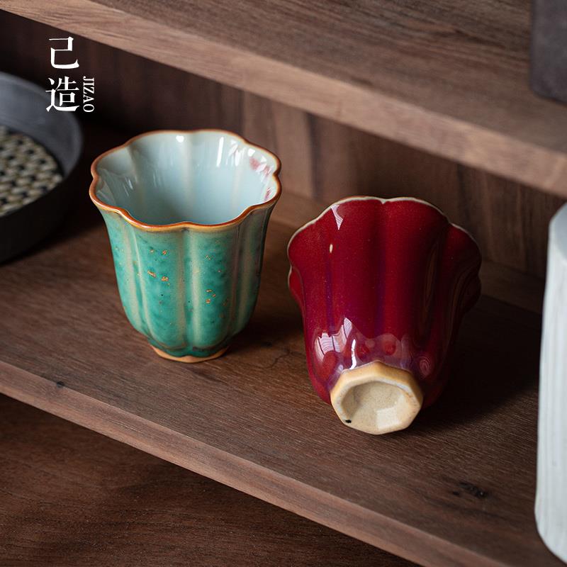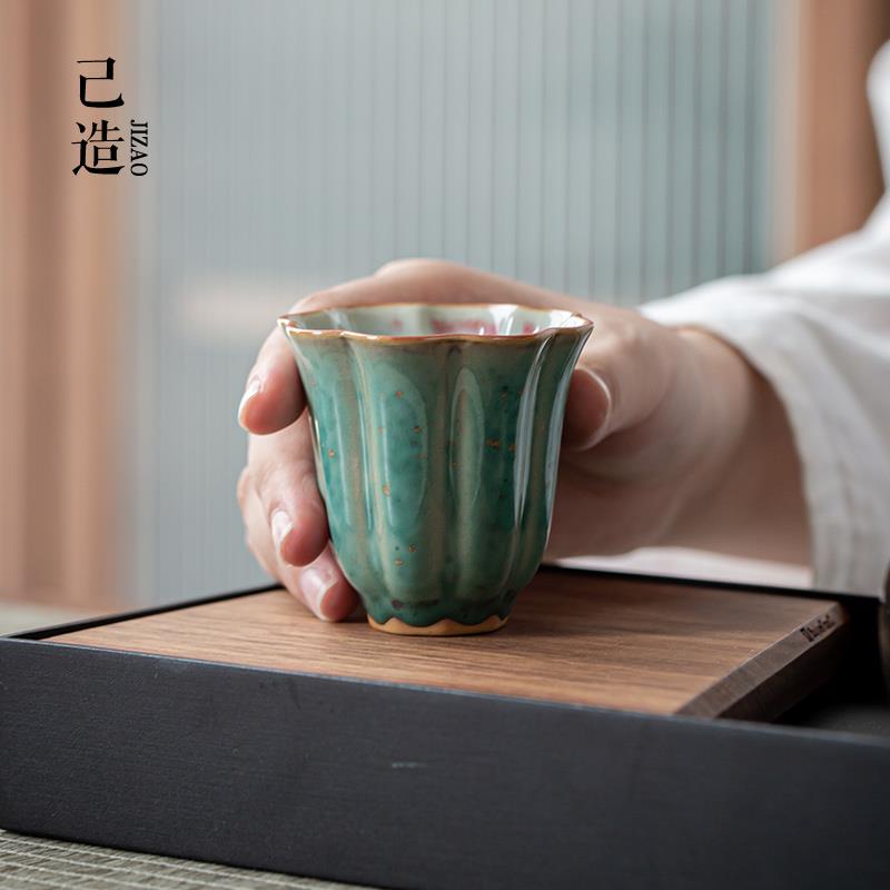 己造 窑变松石绿钧窑花瓣小茶杯功夫茶具家用主人杯陶瓷个人单杯 - 欧泊百货官营店