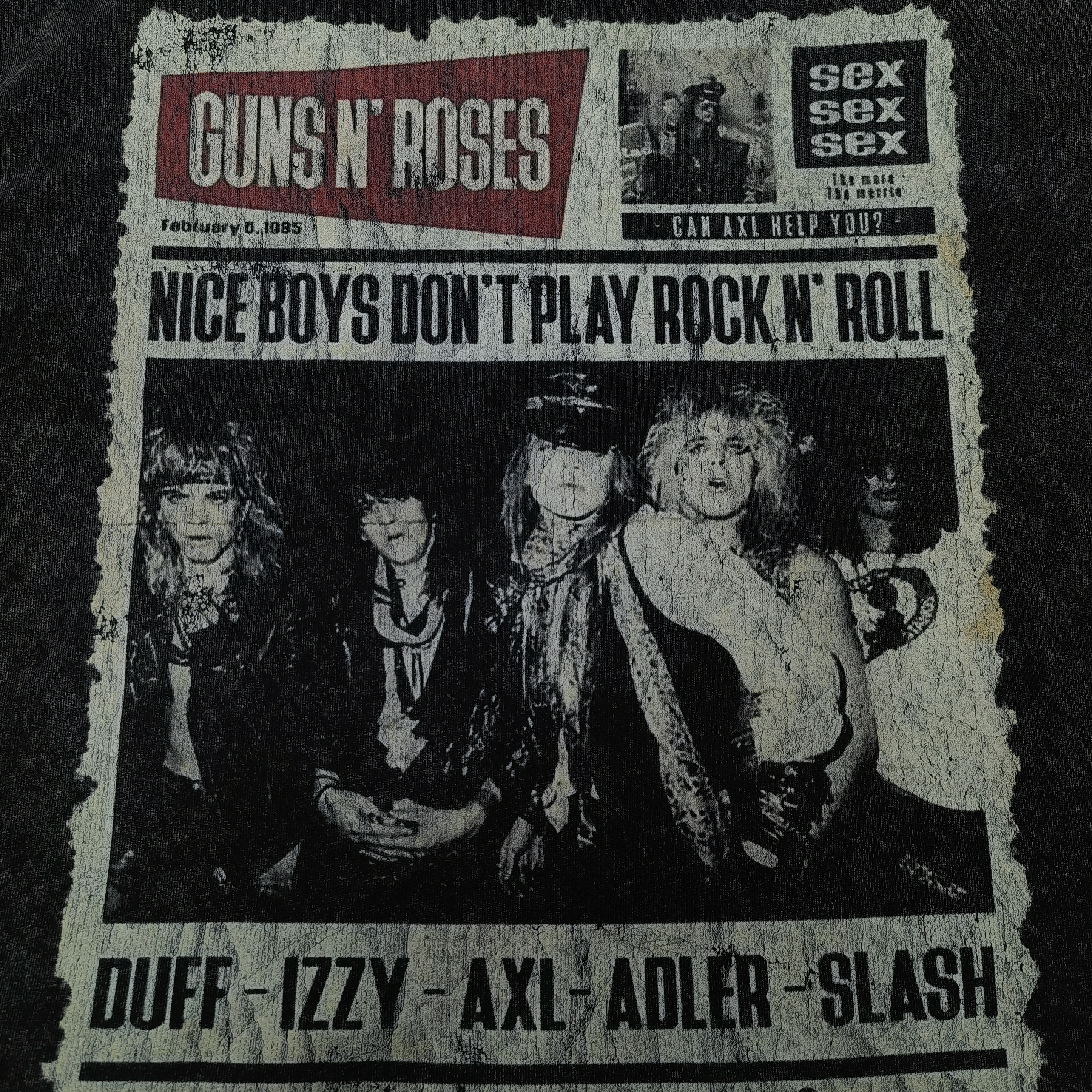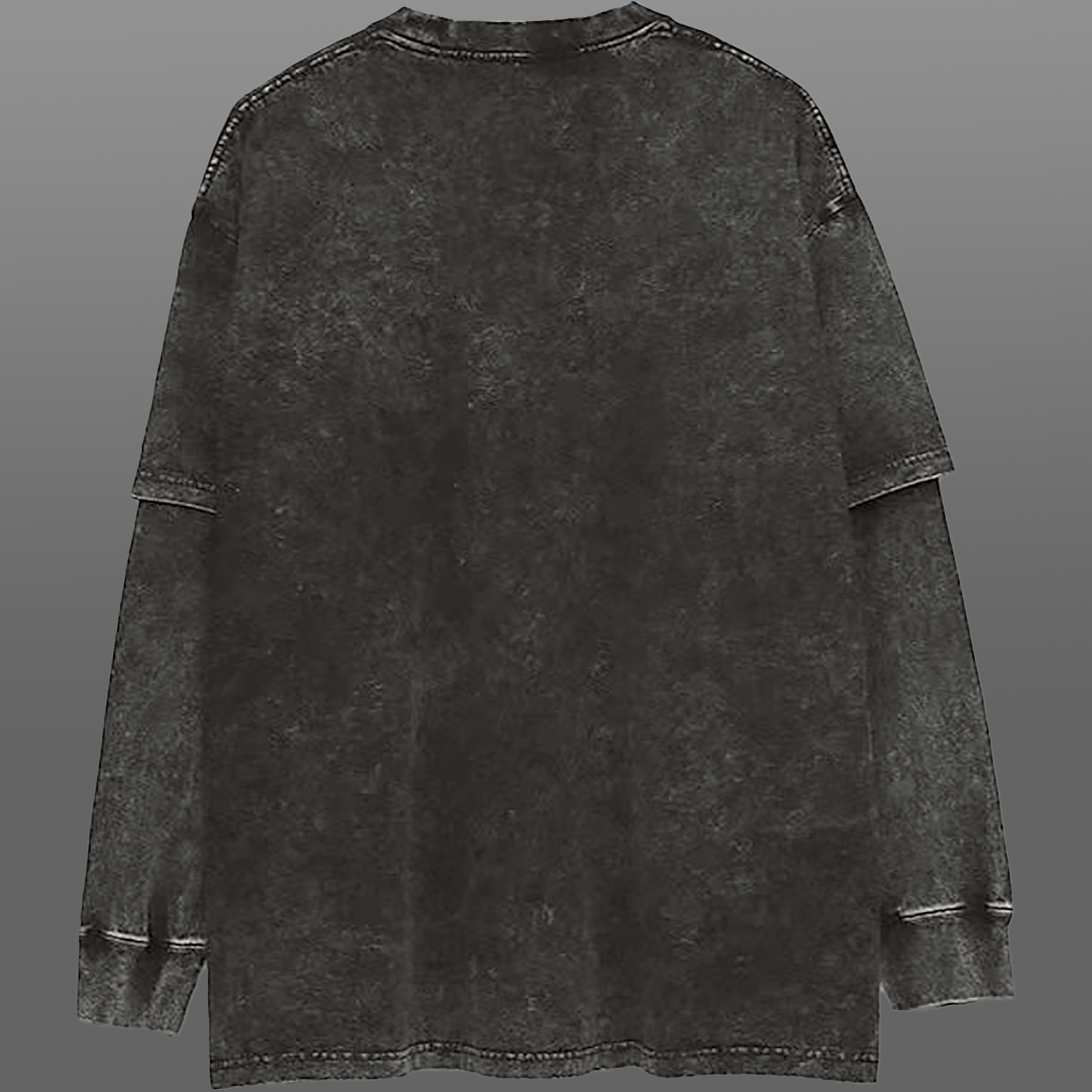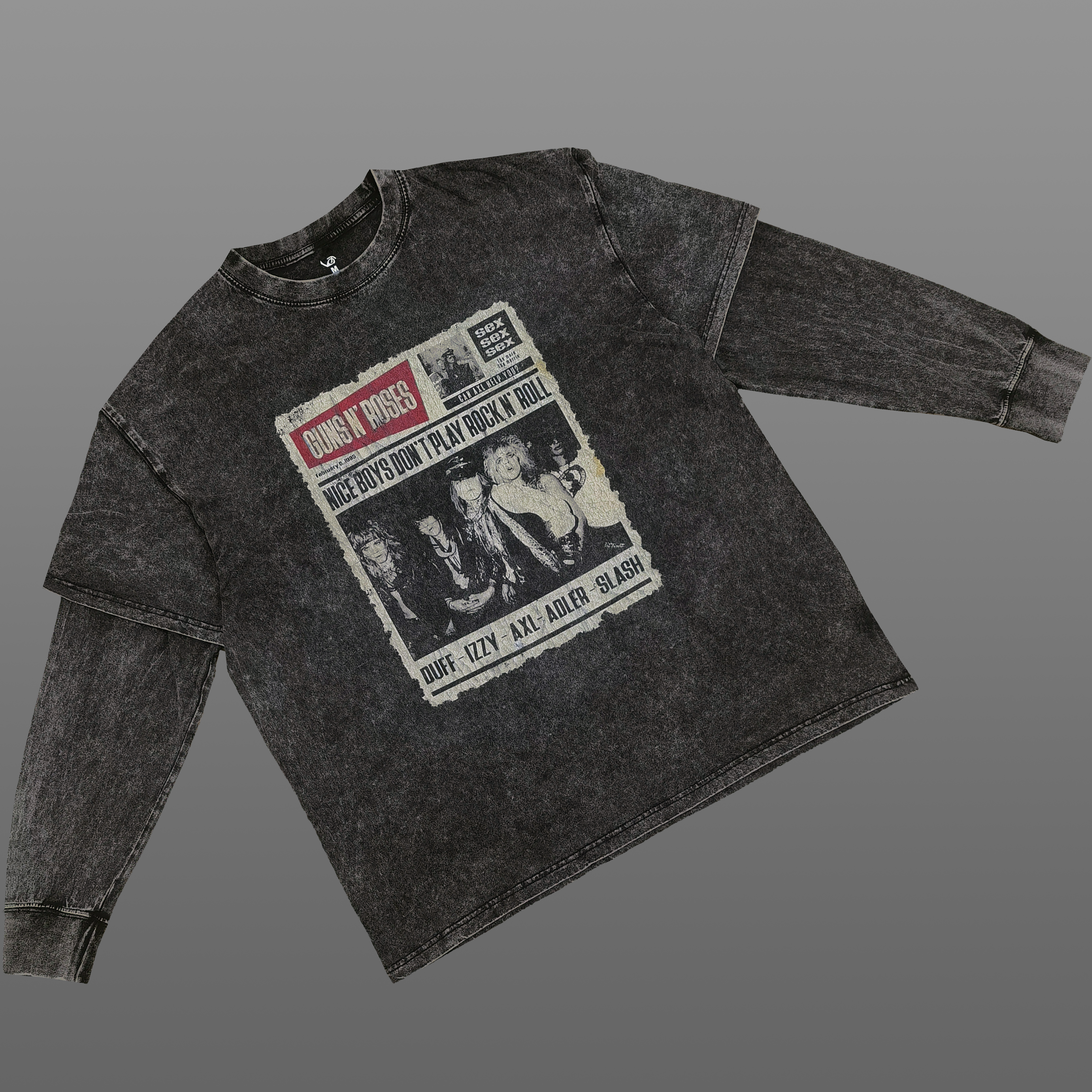 春秋240g水洗做旧枪花摇滚乐队假两件男潮流宽松纯棉圆领长袖T恤 - Vortex蜗牛