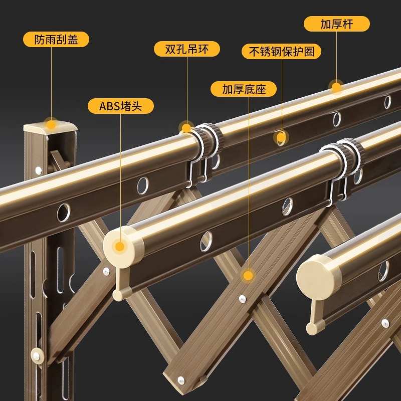 铝合金推拉晾衣架阳台家用可伸缩晾晒架窗外折叠挂衣架壁挂晾衣杆 - 时光倒流2999年