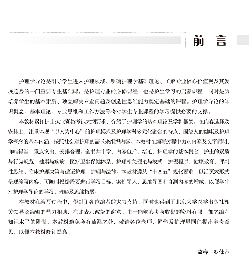现货正版 护理学导论 高等职业院校教材 敖春 罗仕蓉 主编 北京大学医学出版社9787565925665 - 世纪在线图书专营店