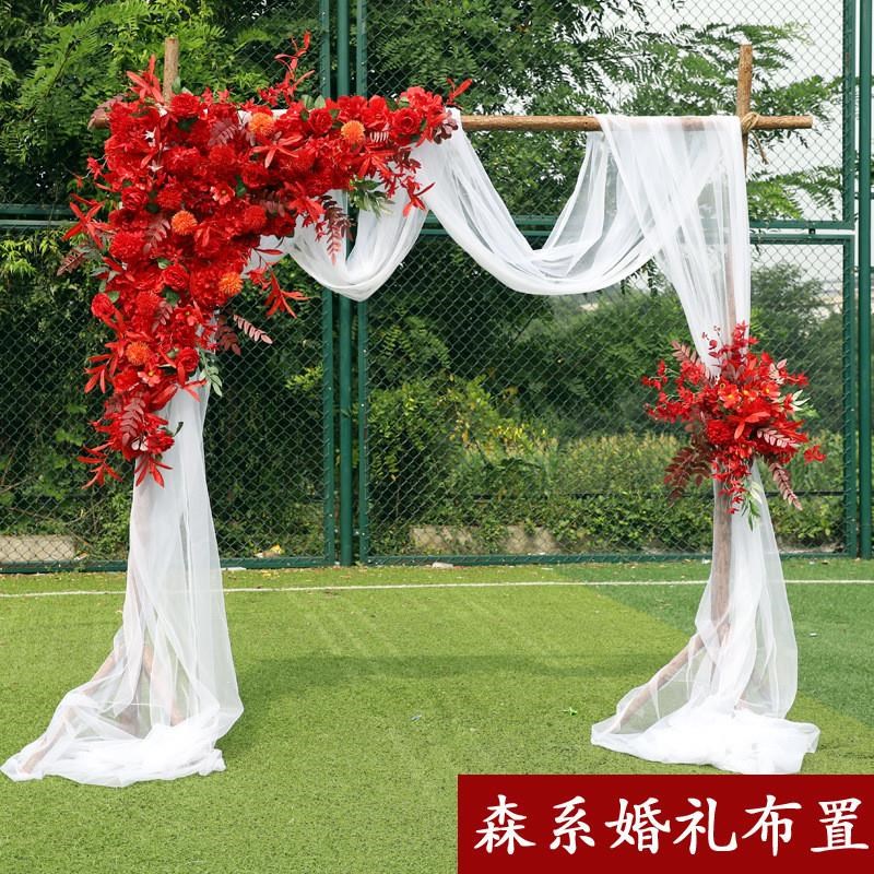 森系婚庆道具婚礼舞台背景v布置木桩拱门摆件户外草坪装饰成品花