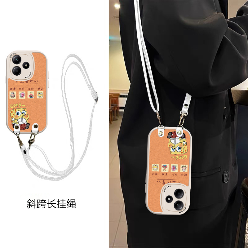 橙色硅胶适用红米Note10Pro手机壳斜跨Note11挂绳Note11T好看全包Note12TPro少女卡通图案可爱保护壳 - 一诺思原数码手机壳