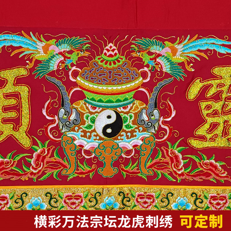 潮绣刺绣绣品手工盘金凸金字道法自然威灵显赫四灵横彩横幅三米 - 佛道堂企业店
